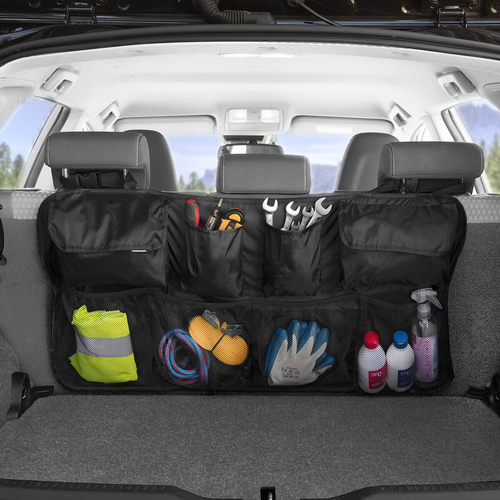An original car boot organiser which is very practical for tidily storing a multitude of objects and optimising the use of space. It has a large storage capacity with 8 compartments that enable you to store all types of items while taking up little space. These include books, magazines, bottles, pens, note pads, first aid kit, towels, umbrellas, toys, cuddly toys, work gloves, reflective vests, tools, cloths, car cleaning products, etc. This boot organiser is extremely useful for everyday and for long road trips. It helps to keep the boot tidy at all times, which also enables you to have objects to hand that you may need at any timeby putting them in an obvious place. It features 4 opaque pockets (2 with flaps) and 4 pockets with mesh to make it easy and quick to view their contents. It has 3 fastening straps for the seats with click and velcro closures for greater hold. It can be installed and removed easily, using the straps and velcro. The lightweight, flexible and adjustable design fits any car boot and is easy to fold to transport and store easily. In addition, it is water resistant and is made from high quality materials.