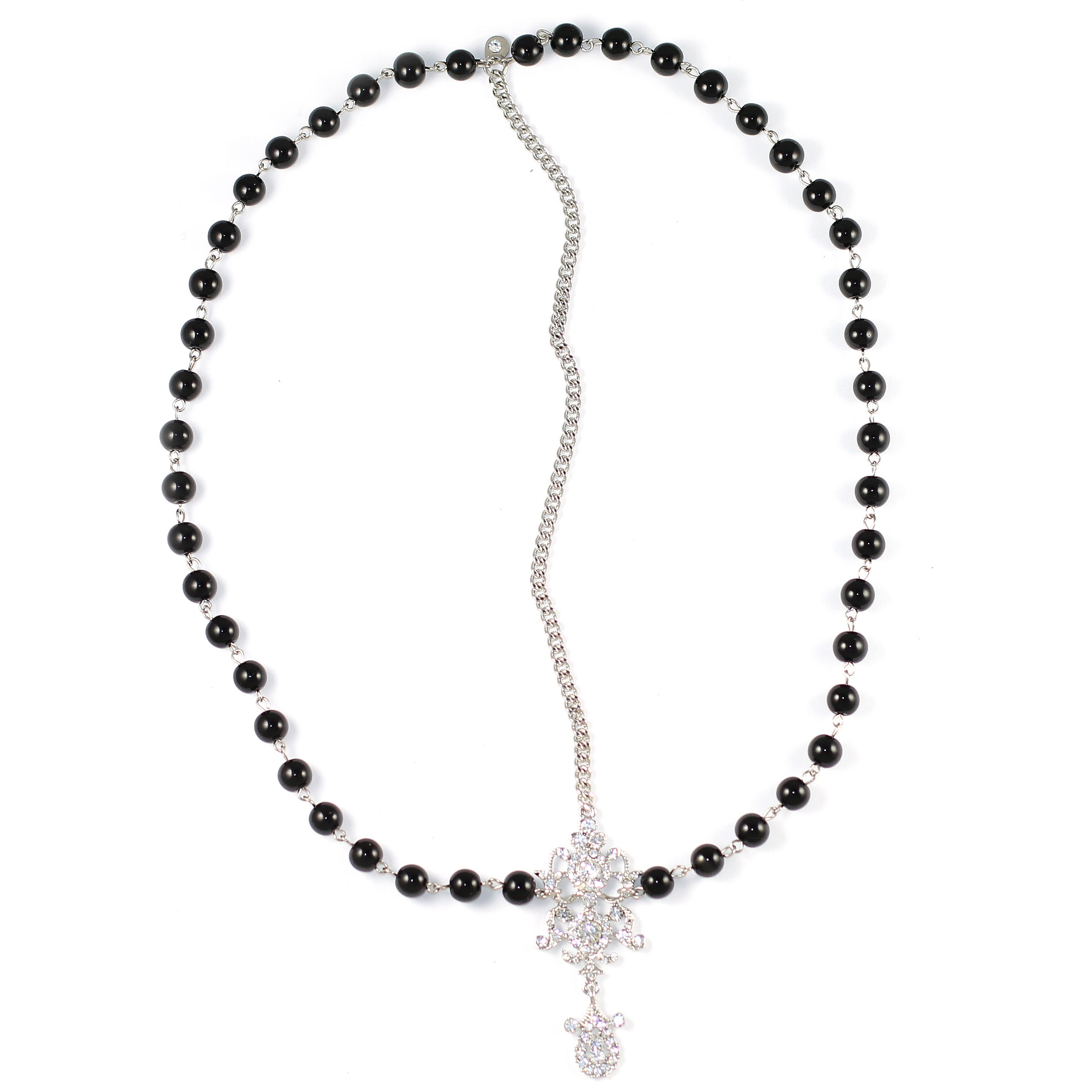 The Draping Pearls Chain Headpiece is a stunning accessory that adds a touch of elegance and sophistication to any outfit. This exquisite headpiece features two side draping chains adorned with beautiful simulated pearls, which are strategically placed between each link to create a delicate and eye-catching design. At the center front, a sparkling crystal pendant hangs gracefully on the forehead, providing an additional element of glamour that is sure to turn heads. Crafted with care, this headpiece is made from high-quality alloy settings that securely hold the Swarovski crystals, ensuring that you shine brightly at any event. The simulated pearls used in this design mimic the lustrous appearance of real pearls, making this headpiece a luxurious addition to your jewelry collection without the hefty price tag. Designed to fit head sizes ranging from 21 to 24 inches, this versatile accessory can be adjusted to suit your comfort and style preferences. Whether you're dressing up for a wedding, a prom, or any special occasion, the Draping Pearls Chain Headpiece is the perfect finishing touch to elevate your look. Each piece is signed and assembled in the USA using imported materials, reflecting a commitment to quality and craftsmanship. When you purchase this headpiece, it comes beautifully packaged in a KP pink jewelry storage box, making it an ideal gift for yourself or a loved one. The elegant design and thoughtful presentation ensure that this headpiece will be cherished for years to come. To maintain its beauty, it is recommended to spot clean the headpiece only, preserving the integrity of the pearls and crystals. This headpiece has been featured on various fashion blogs, including the Kristinadolinskaya Blog, showcasing its popularity among fashion enthusiasts. With its timeless design and luxurious materials, the Draping Pearls Chain Headpiece is not just an accessory; it's a statement piece that embodies elegance and style. Whether you're attending a formal event or simply want to add a touch of glamour to your everyday look, this headpiece is the perfect choice. Its unique design allows it to complement a variety of hairstyles, from loose waves to elegant updos. The combination of pearls and crystals creates a stunning visual effect that enhances your natural beauty. Don't miss out on the opportunity to own this exquisite headpiece that has captured the hearts of many. Shop now and experience the elegance of the Draping Pearls Chain Headpiece for yourself.
