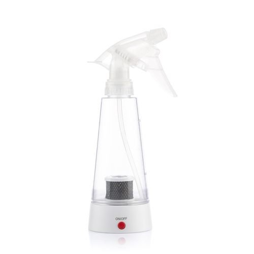 An electrolytic disinfectant generator which is very effective for removing bacteria easily from surfaces by using sterilised electrolysed water. It works by mixing tap water (200ml) and non-iodised salt (10g) to obtain a completely natural solution with disinfectant properties (100 times superior to bleach) and degreasing properties (powerful cleaner). You simply need to add water and salt to the tank, press the on/off button to activate the process and wait for approximately 5 minutes until the blue light switches off and then the conversion to sodium hypochlorite is completed.