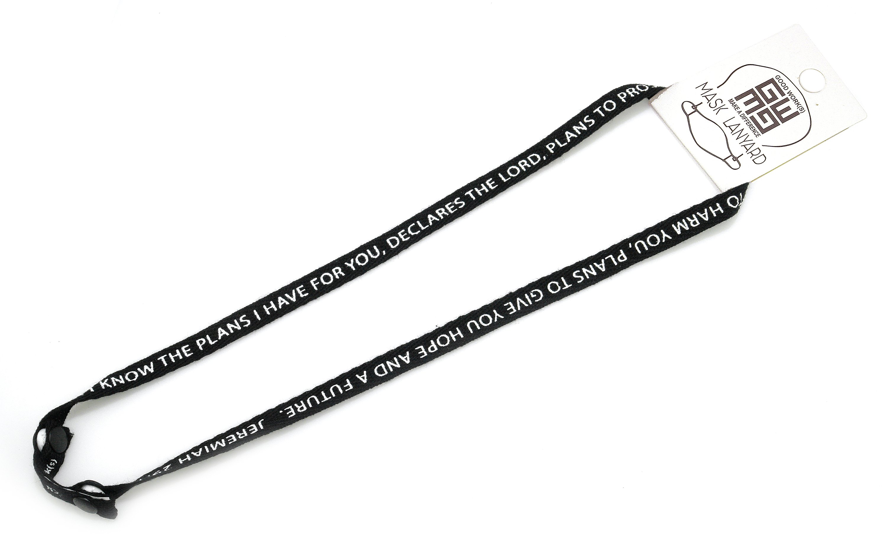 In summary, our Black Face Mask Lanyard is an essential accessory for anyone who wears a mask. With its durable construction, inspirational design, and practical features, it is a must-have item for daily use. Stay safe, stylish, and inspired with this unique lanyard.
