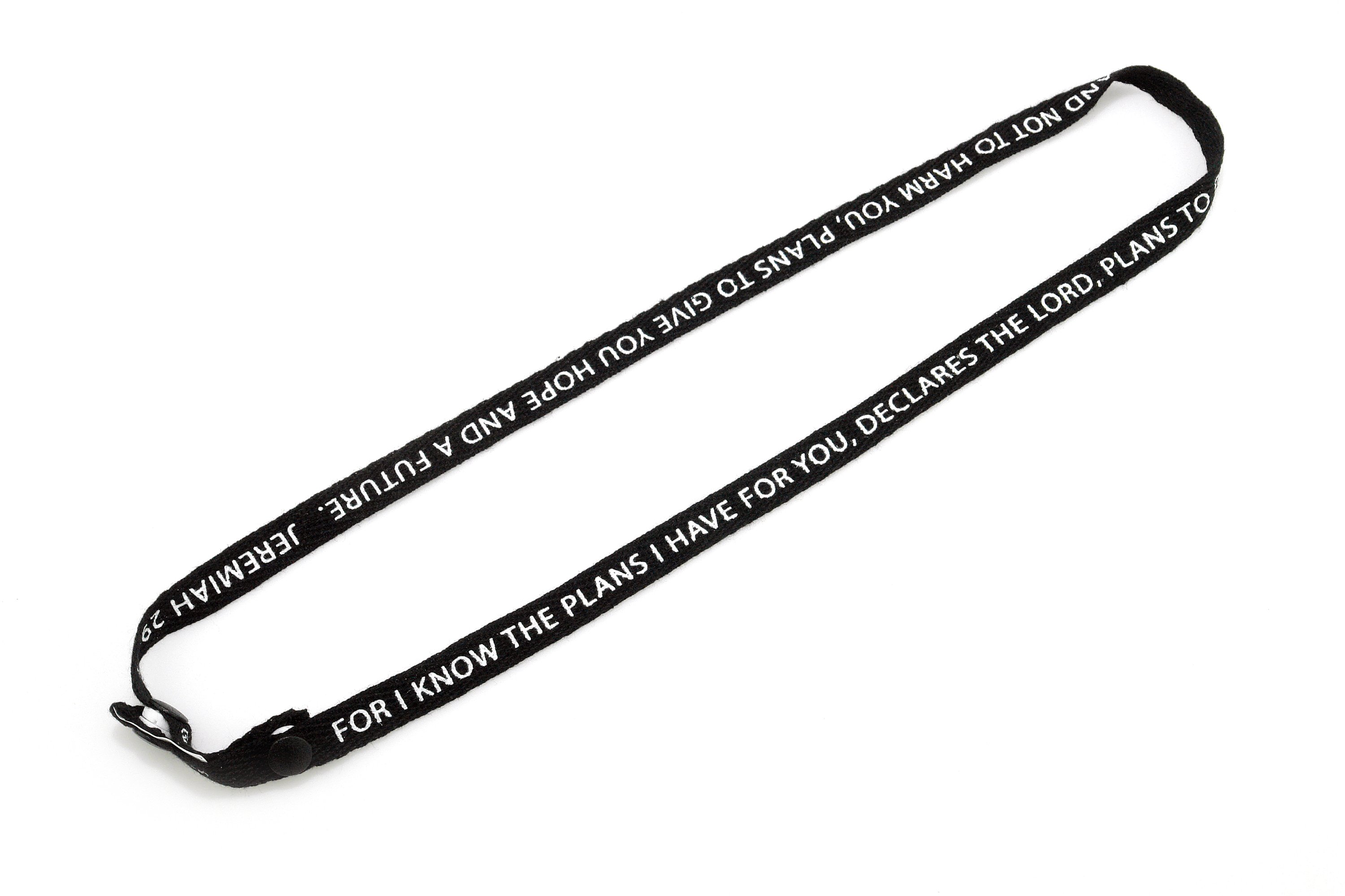 What sets this lanyard apart is its beautiful inscription of Jeremiah 29:11, which reads: "For I know the plans I have for you, declares the Lord, plans to prosper you and not to harm you, plans to give you hope and a future." This powerful message serves as a daily reminder of hope and positivity, making it not just a practical item, but also a source of inspiration.