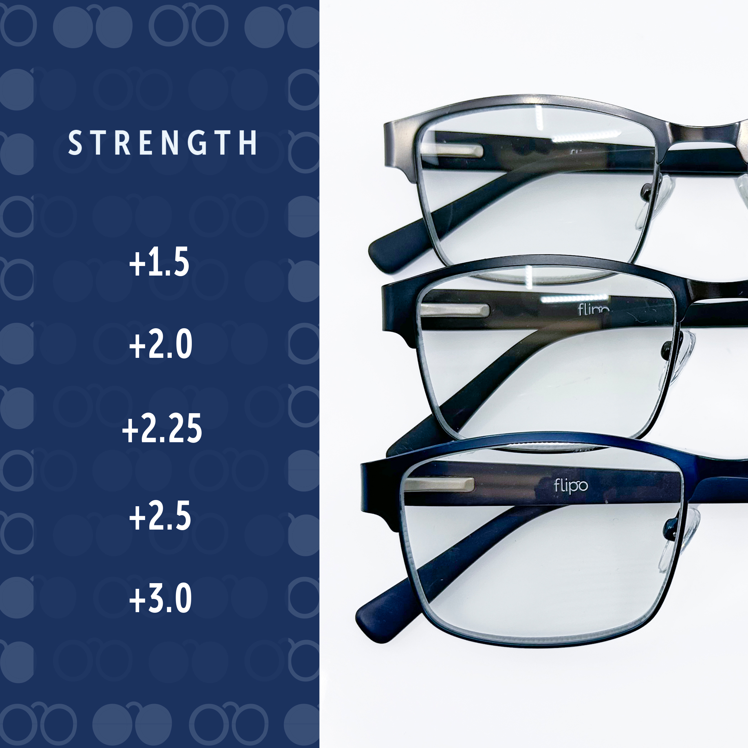 Understanding that everyone's vision needs are different, Flipo Eyewear offers these glasses in five available strengths. Whether you need a stronger lens for reading fine print or a milder option for general use, you can find the perfect pair to suit your needs. This flexibility ensures that everyone can benefit from the protective features of these glasses, whether you're reading a book, working on a computer, or simply enjoying some leisure time.