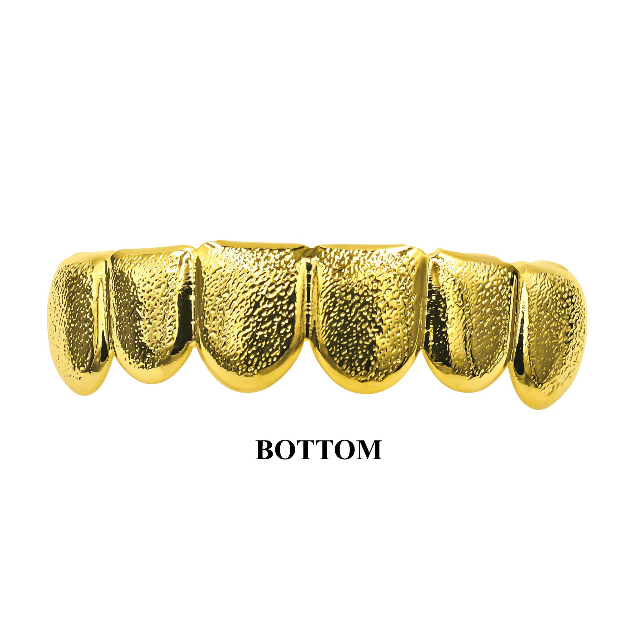 The PLUNDER GRILLZ feature a fully textured surface that catches the light beautifully, creating a stunning beam and glint from every angle. This unique design not only enhances your smile but also adds a touch of luxury to your overall appearance. With these grillz, you can be sure that you will shine bright, day or night.