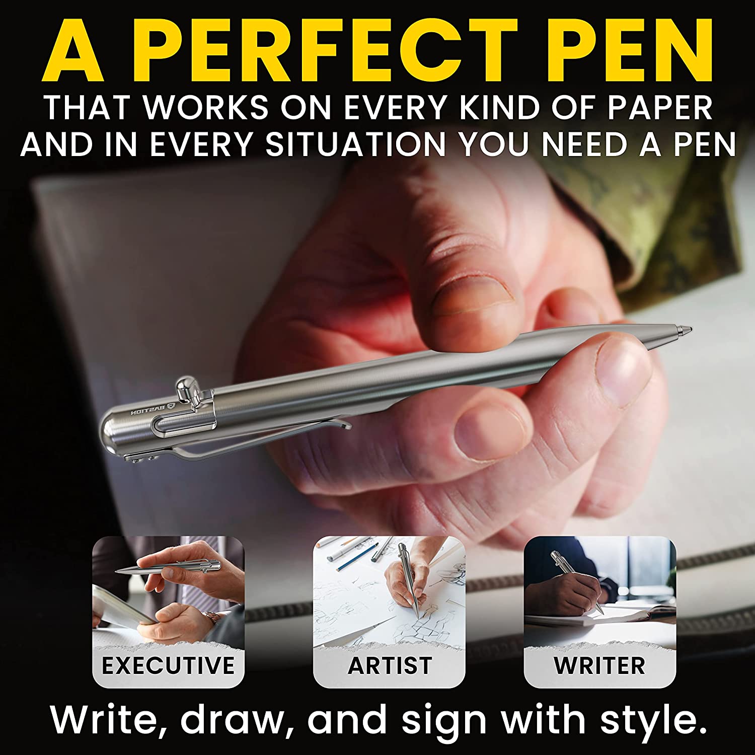 Weighing in at just 2.8 ounces, the Stainless Steel Bolt Action Pen is lightweight and easy to carry. Its compact length of 4.36 inches makes it perfect for slipping into your pocket, purse, or briefcase. Whether you're at the office, in a meeting, or on the go, this pen is always within reach, ready to assist you in capturing your thoughts.