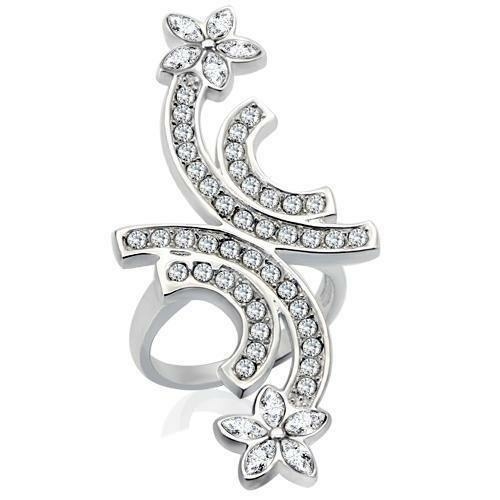 The ring is made from premium brass, known for its strength and resistance to tarnishing. The rhodium finish adds an extra layer of protection while giving the ring a brilliant shine that catches the light beautifully. This combination of materials ensures that the ring maintains its stunning appearance, making it a perfect addition to any jewelry collection.