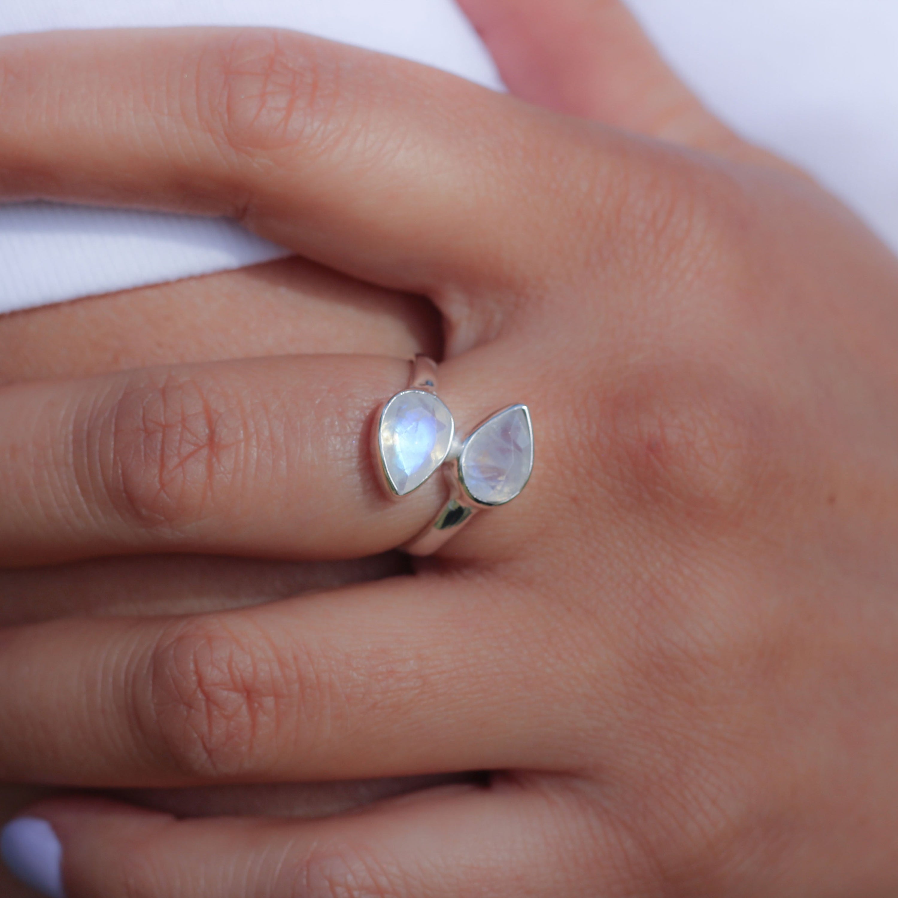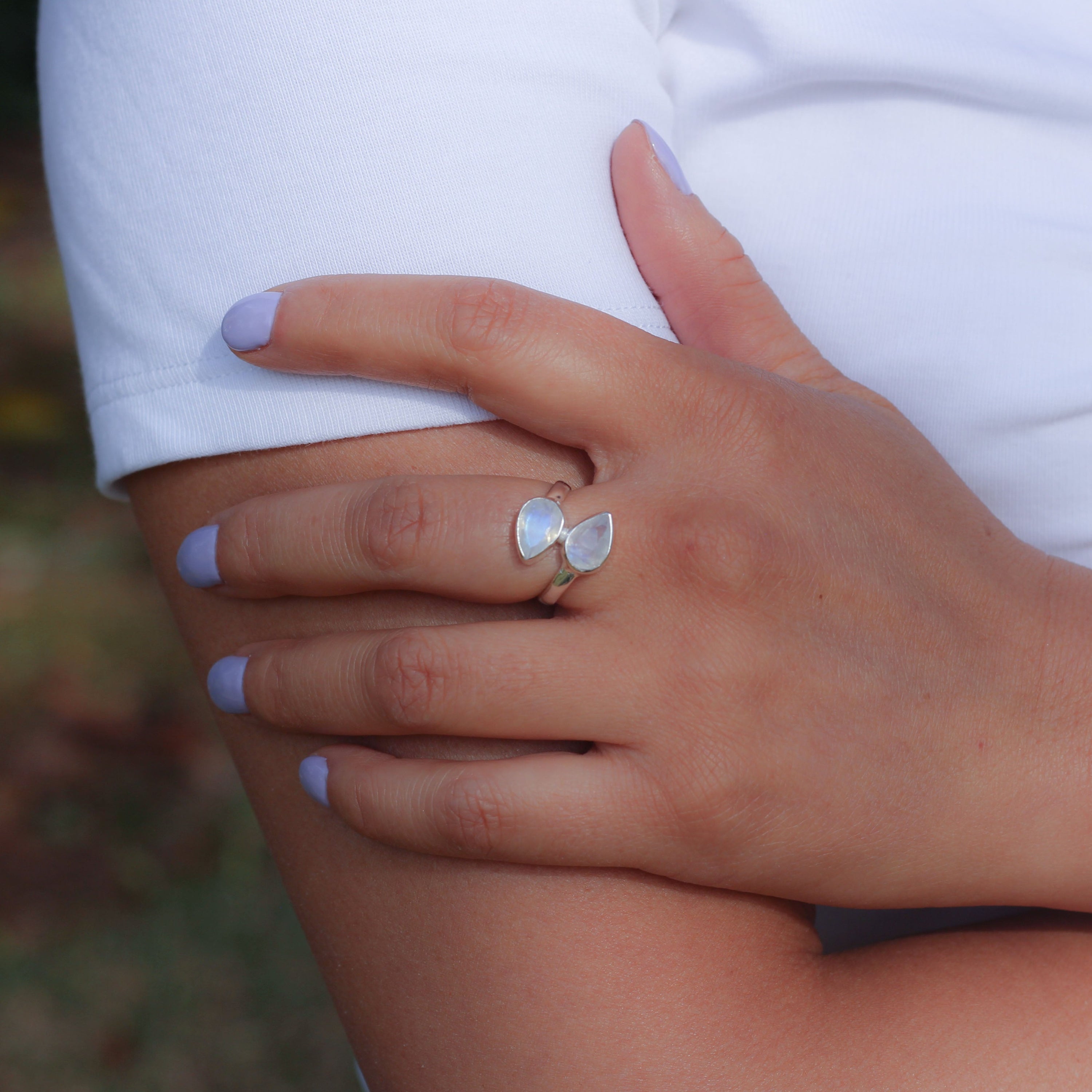 Bague en Pierre de Lune 'Pouvoirs du Féminin' en Argent 925, mettant en valeur la pierre de lune et le design élégant.
