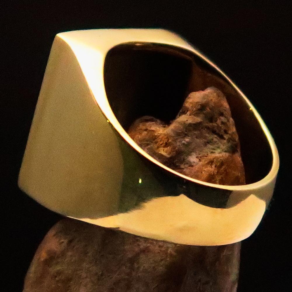 This ring is crafted from solid brass, ensuring durability and longevity. The high polished finish gives it a sleek and sophisticated look, making it suitable for both casual and formal wear. The attention to detail in the design reflects quality craftsmanship, making it a standout piece in any jewelry collection.