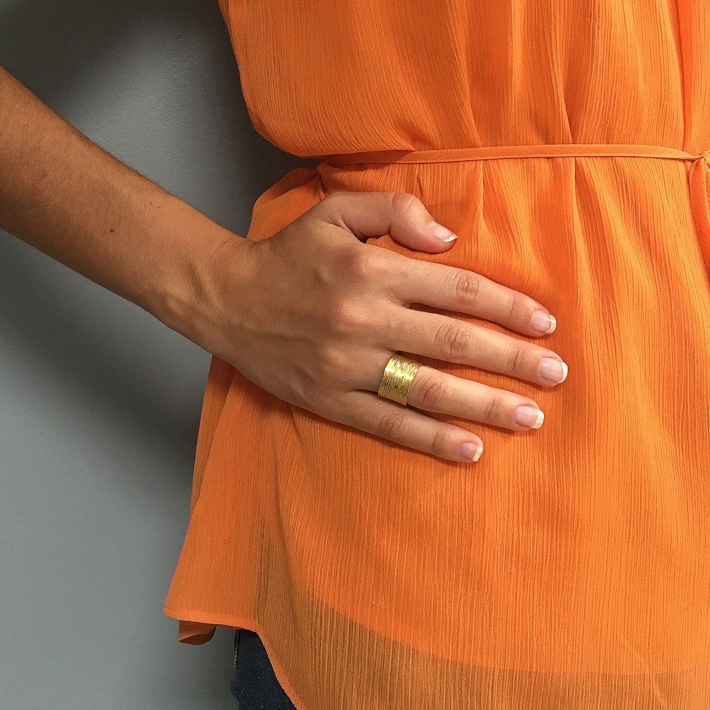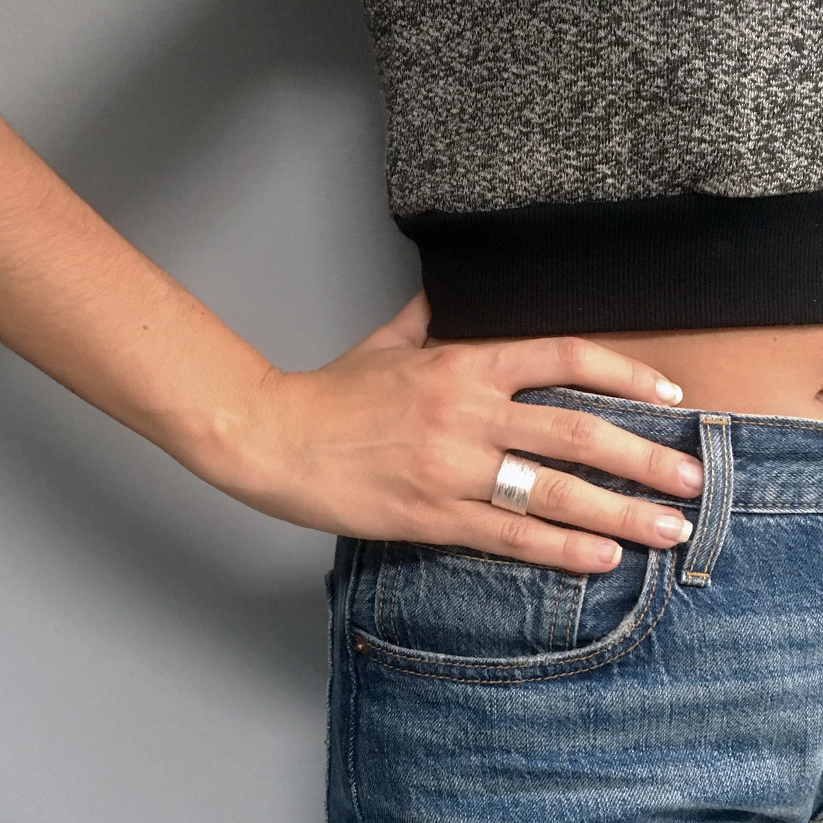 The Brushed Ring is a stunning piece of jewelry that embodies simplicity and elegance. Crafted from high-quality pewter casting, this ring is available in three beautiful finishes: 24 kt gold plating, sterling silver plating, and rose gold plating. Each finish offers a unique look, allowing you to choose the one that best suits your personal style. The brushed texture of the ring adds a subtle sophistication, making it a versatile accessory that can be worn on any occasion. Whether you're dressing up for a special event or looking for a chic everyday piece, the Brushed Ring is the perfect choice. Its minimalist design allows it to complement a wide range of outfits, from casual to formal. One of the standout features of this ring is its slightly adjustable nature, which means it can fit most finger sizes comfortably. This makes it an excellent gift option, as you won't have to worry about selecting the right size for your loved ones. The ring measures 0.5 inches wide, providing a delicate yet noticeable presence on your finger. For those who love to mix and match their jewelry, the Brushed Ring is perfect for stacking. You can wear it alongside other rings for a trendy layered look, or even wear two of them on different fingers for maximum impact. This versatility makes it a must-have addition to any jewelry collection. The warm gold finish of the ring is particularly appealing, as it adds a touch of luxury without being overly flashy. It's a piece that can easily transition from day to night, making it a practical choice for anyone who values both style and functionality. Additionally, the Brushed Ring is easy to care for. To maintain its beautiful finish, simply wipe it with a soft cloth after wearing. Avoid exposing it to harsh chemicals or abrasive materials to keep it looking its best. This ring is not just a piece of jewelry; it's a statement of your personal style. Whether you prefer a classic look or something more modern, the Brushed Ring can adapt to your fashion choices. It's also a great way to express your individuality, as its simple design allows you to showcase your unique flair. In summary, the Brushed Ring is a beautiful, minimalist piece that offers both style and versatility. With its adjustable fit, various plating options, and ability to be worn in multiple ways, it's an essential accessory for anyone looking to enhance their jewelry collection. Whether you're treating yourself or searching for the perfect gift, this ring is sure to impress. Don't miss out on the opportunity to own this exquisite piece of jewelry that will elevate your everyday look.