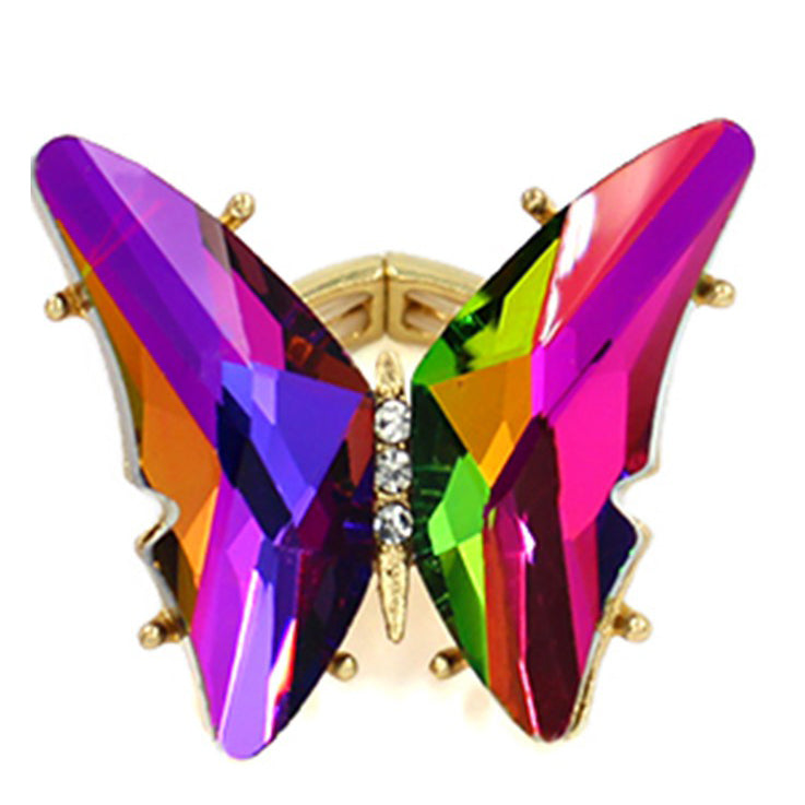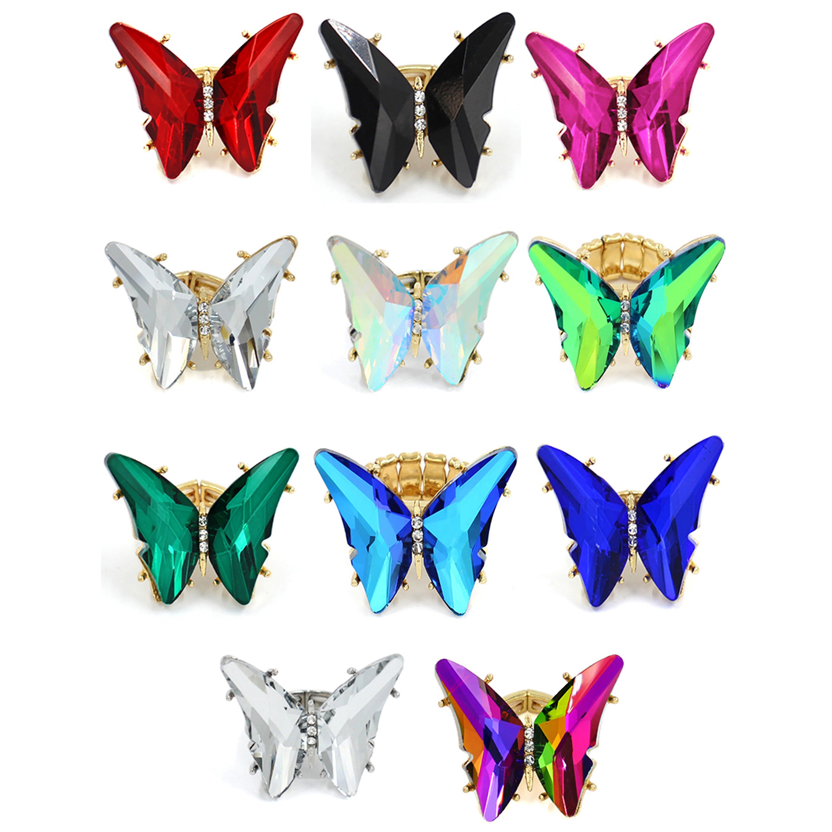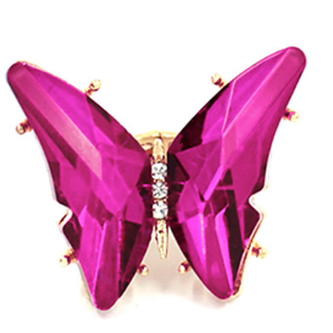 Measuring approximately 1.5 inches by 1.5 inches, the Butterfly Rhinestone Flexible Ring is designed to fit comfortably on your finger. Its flexible structure allows for an adjustable fit, ensuring that it can be worn by anyone, regardless of finger size. The intricate detailing of the butterfly design showcases the craftsmanship that goes into creating each piece, making it a unique addition to your jewelry collection.
