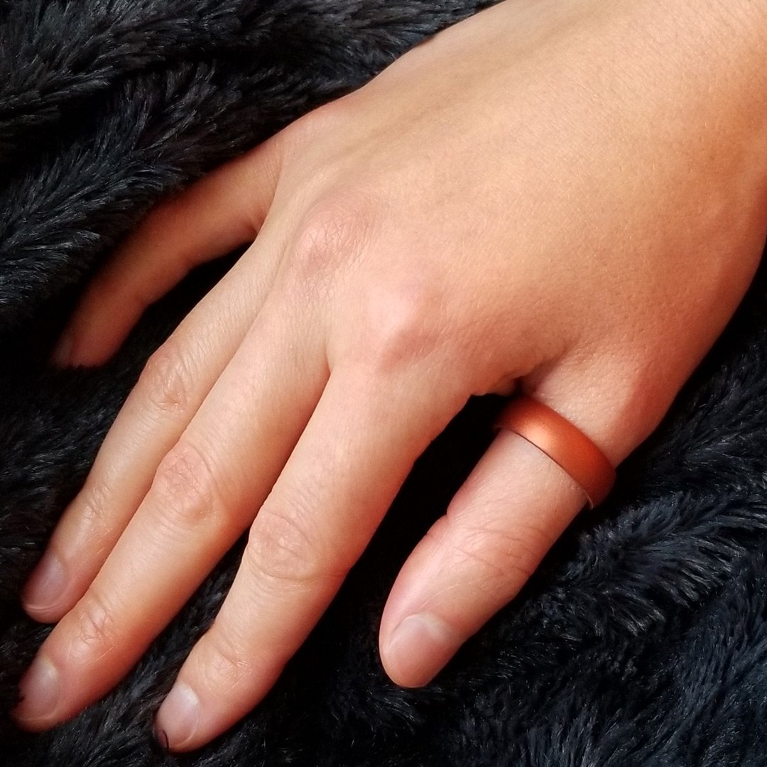 Say goodbye to the discomfort of traditional rings with the ergonomic comfort fit of the Copper Breathable Silicone Ring. Designed to prevent the dreaded 'finger muffin-top,' this ring sits comfortably on your finger without pinching or constricting. The thoughtful design ensures that you can wear it all day long without any irritation, making it a favorite among those who prioritize comfort.