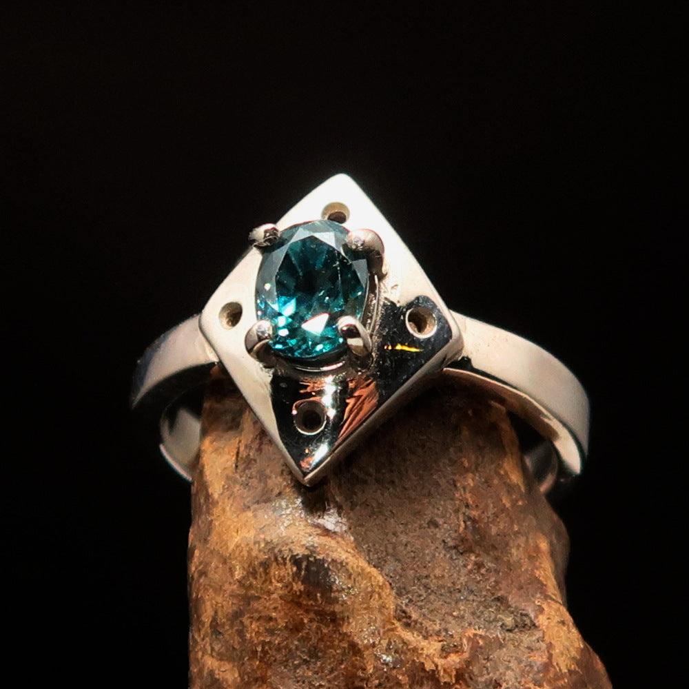 Introducing our exquisite Diamond Shaped Gemstone Sterling Silver Solitaire Ring, a perfect blend of elegance and sophistication. This stunning ring features a beautiful oval cut blue Zircon, which is known for its vibrant color and brilliance. The ring is meticulously crafted from high-quality sterling silver, ensuring durability and a luxurious shine that will last for years to come.