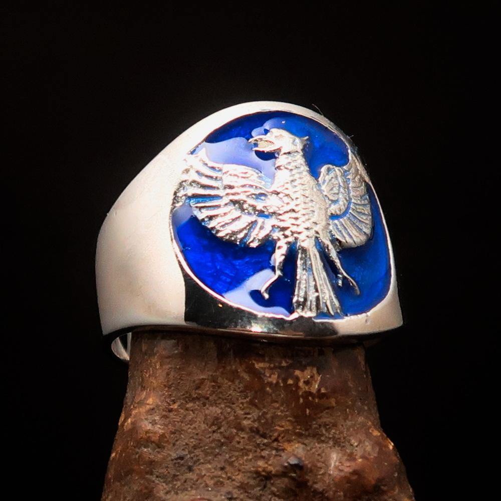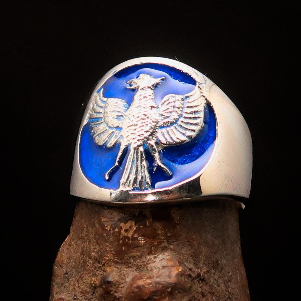 The Excellent crafted ancient Men's Garuda Ring Blue is a remarkable piece of jewelry that combines elegance and tradition. Made from high-quality solid sterling silver, this ring is not only a fashion statement but also a symbol of craftsmanship and authenticity. The stunning blue enamel design adds a vibrant touch, making it a perfect accessory for any occasion.