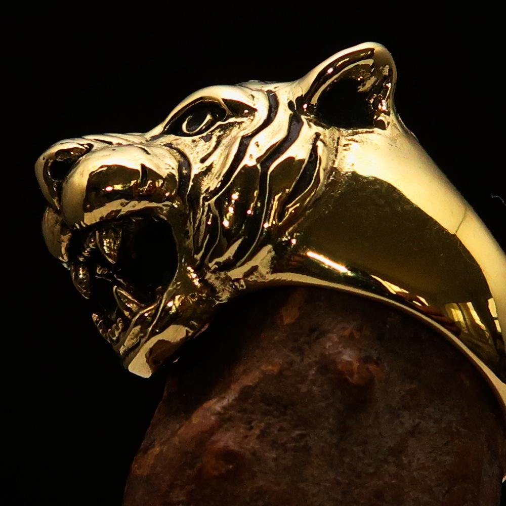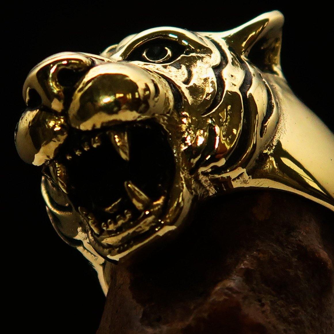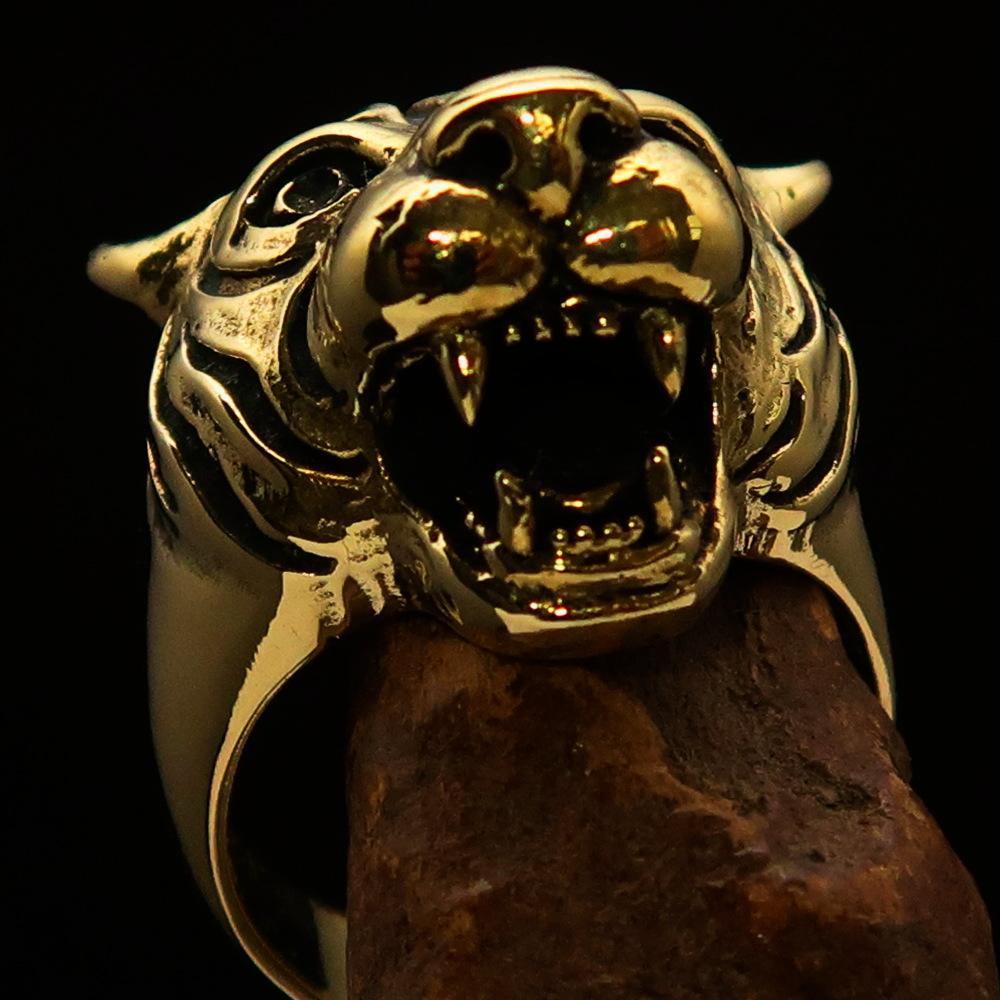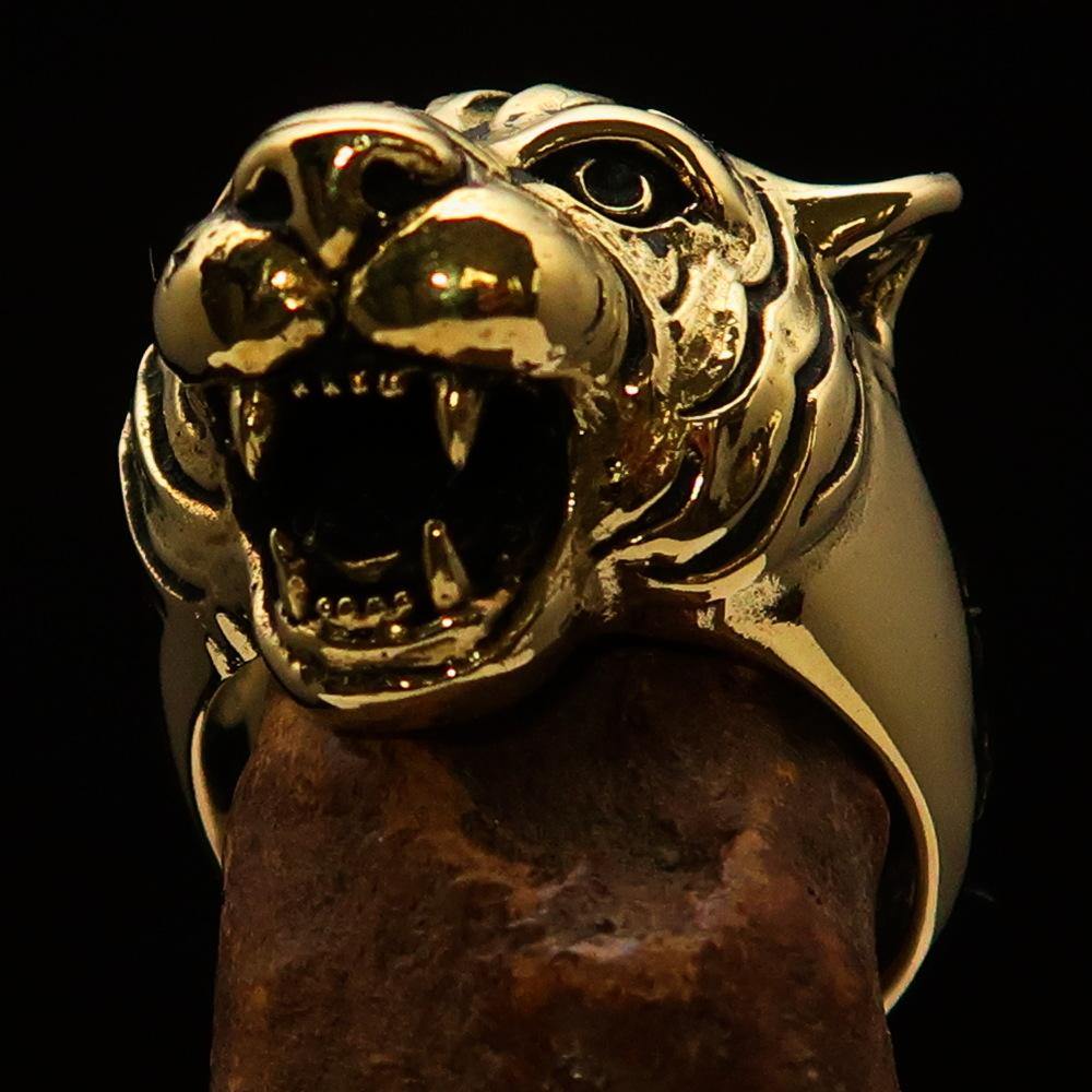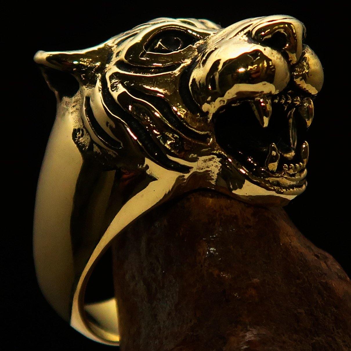 The Excellent Crafted Animal Ring Tiger Head is a stunning piece that combines artistry and durability, making it an essential accessory for both animal lovers and fashion enthusiasts. Crafted from solid brass, this ring not only showcases a unique design but also promises longevity and resilience. The tiger head motif is intricately detailed, featuring both antiqued and high polished finishes that enhance its visual appeal and create a striking contrast.