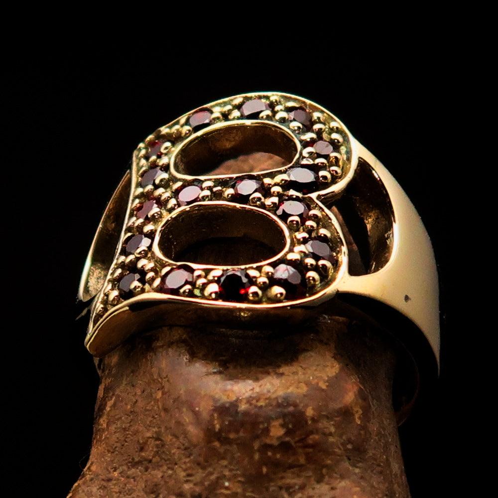 Introducing the Excellent crafted Initial Ring Bold Letter B - 17 red CZ - solid Brass, a stunning piece of jewelry that combines elegance and boldness. This exquisite ring is designed for those who want to make a statement while showcasing their unique personality. The bold letter 'B' is not just a letter; it represents individuality and style, making it a perfect gift for yourself or a loved one.