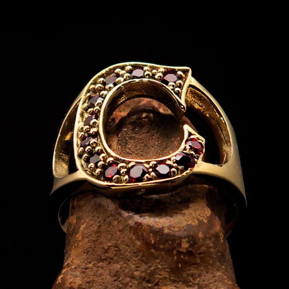 Introducing the Excellent crafted Initial Ring Bold Letter C, a stunning piece that combines elegance and durability. Made from high-quality solid brass, this ring is designed to last while making a bold statement. The standout feature of this ring is the beautifully crafted letter C, which is adorned with 12 dazzling red Cubic Zirconias (CZ). These stones catch the light beautifully, adding a touch of glamour to any outfit.