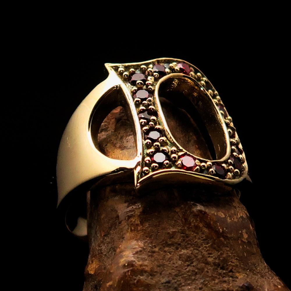 The craftsmanship of this Initial Ring is exceptional. Each ring is expertly crafted with attention to detail, featuring a mirror polish that gives it a sleek and sophisticated look. The bold letter D is adorned with 14 vibrant red Cubic Zirconias, which add a touch of sparkle and elegance to the design. These high-quality stones are carefully set to ensure they stay securely in place, allowing you to wear your ring with confidence.