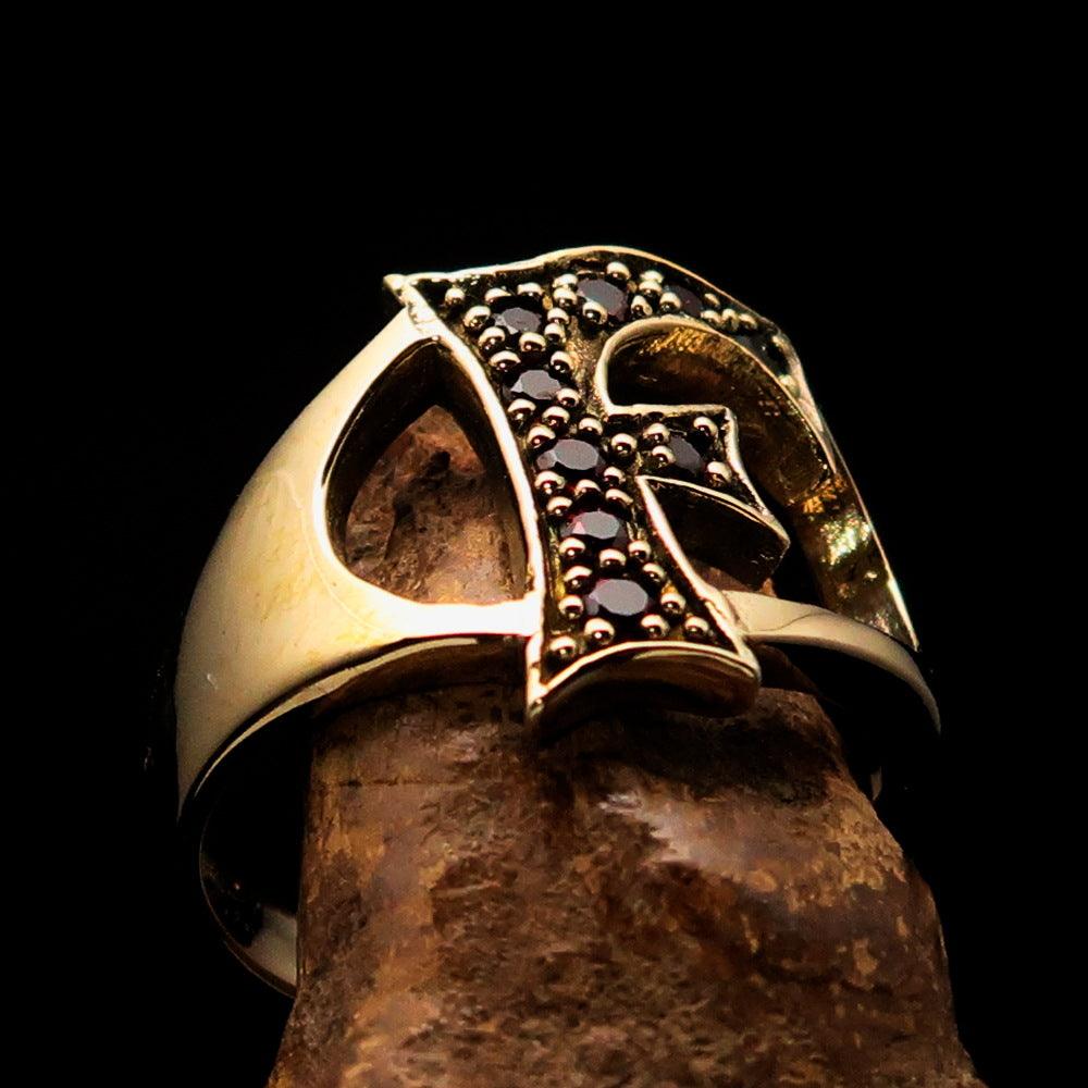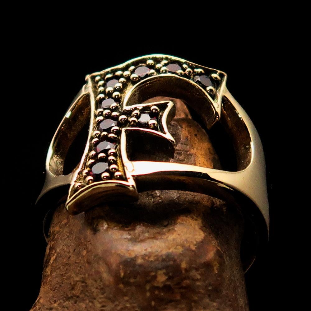 Made from solid Brass, this ring is designed to withstand daily wear while maintaining its beauty. The high-quality materials used in its construction mean that it won't tarnish easily, allowing you to enjoy its stunning appearance for a long time. The red Cubic Zirconias are securely set, ensuring they stay in place and continue to sparkle with every movement.