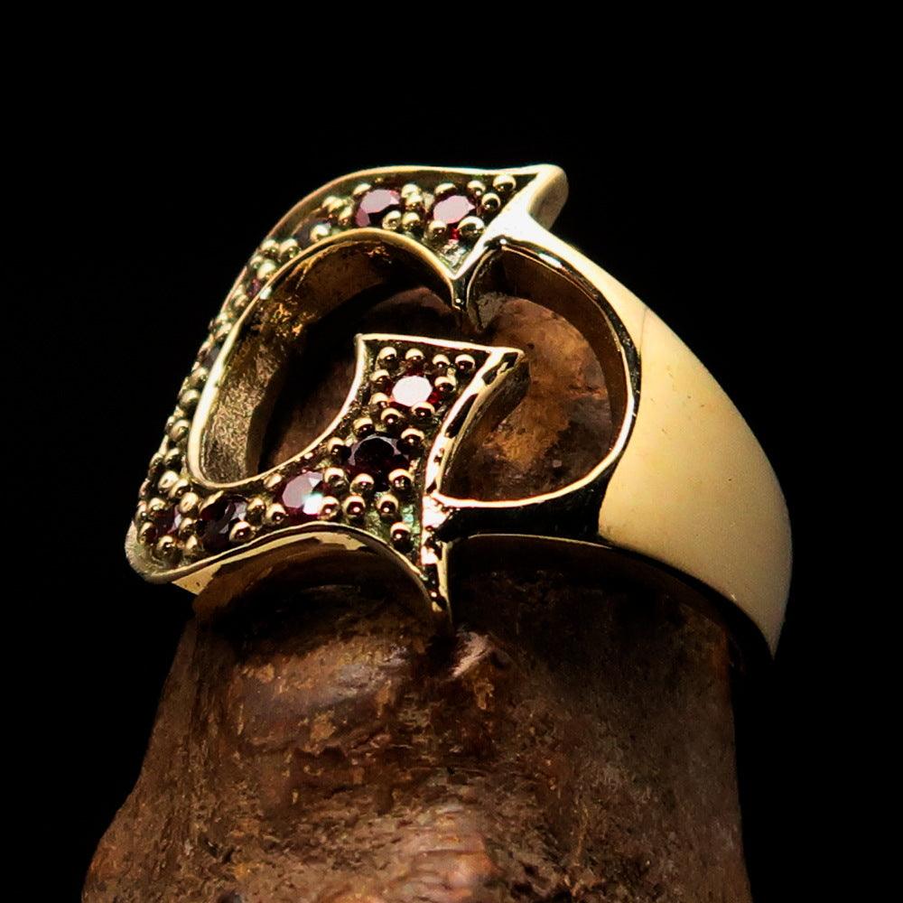 This ring is expertly crafted with a mirror polish finish, ensuring a sleek and shiny appearance that catches the eye. The addition of 12 vibrant red Cubic Zirconias enhances the overall design, providing a pop of color and sparkle that is sure to turn heads. Whether you're dressing up for a special event or looking for a stylish accessory for everyday wear, this ring is versatile enough to complement any outfit.