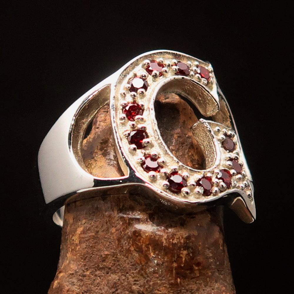 The craftsmanship of this Initial Ring is exceptional. Each piece is meticulously crafted to ensure durability and a luxurious finish. The high polish of the sterling silver enhances the brilliance of the red Cubic Zirconias, making it a standout accessory for any outfit.
