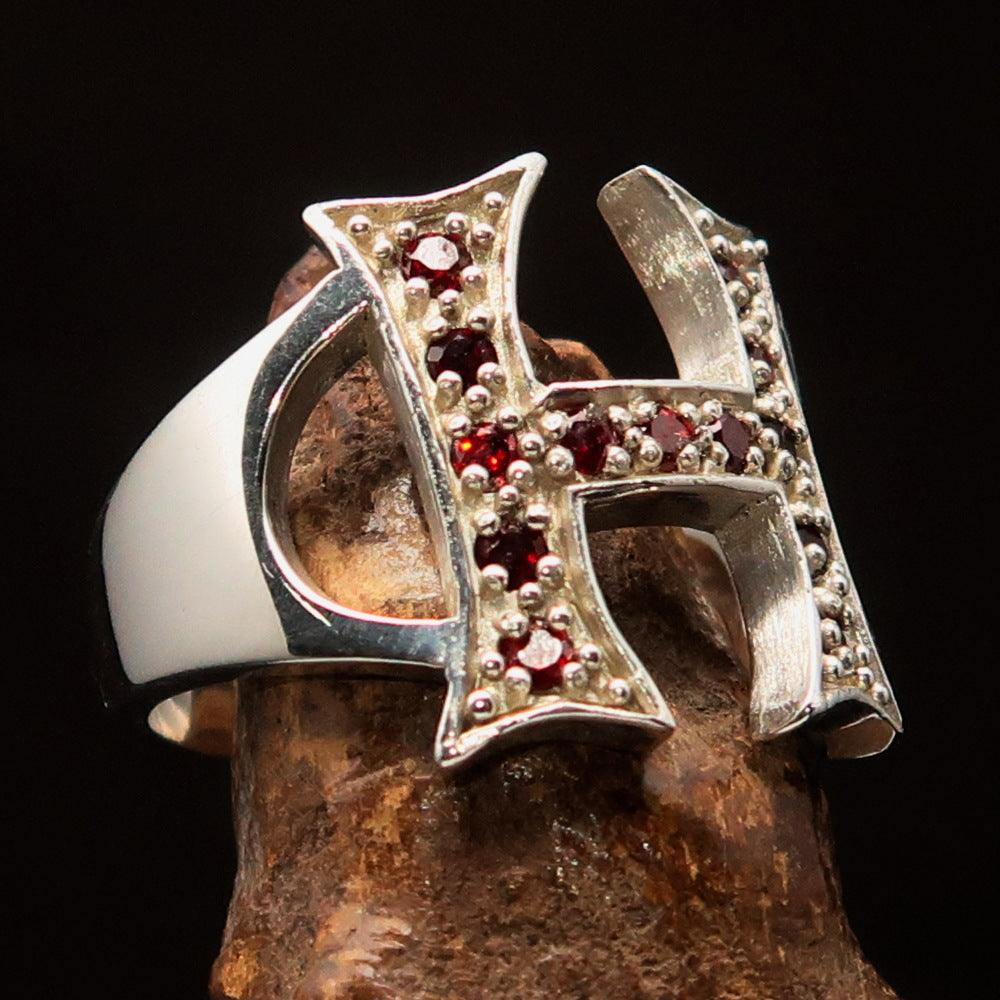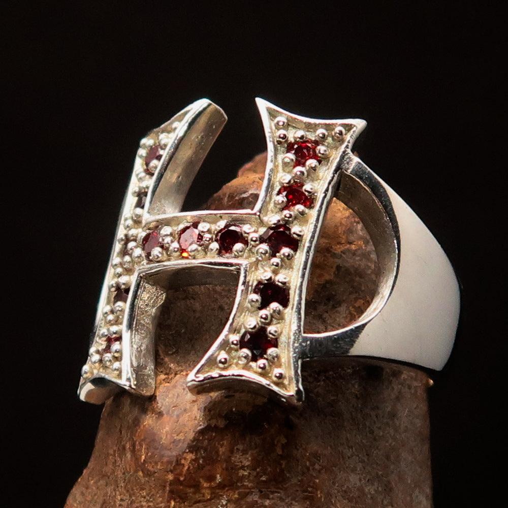The standout feature of this ring is its bold letter H design. This unique initial not only represents your name or a loved one’s but also serves as a fashionable statement piece. Adorned with 13 vibrant red cubic zirconias, the ring sparkles beautifully, making it an eye-catching accessory for any occasion.