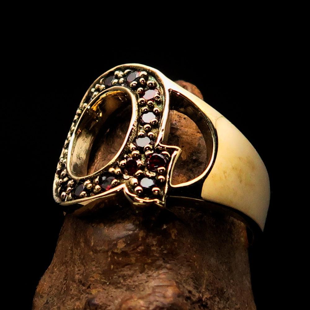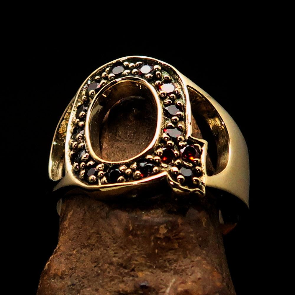 Introducing the Excellent crafted Initial Ring Bold Letter Q, a stunning piece that combines elegance and individuality. This ring is not just an accessory; it is a statement of style and personality. Made from high-quality solid brass, this ring is designed to last while providing a luxurious look. The ring features 15 vibrant red Cubic Zirconias that sparkle beautifully, making it a perfect choice for anyone looking to add a pop of color to their jewelry collection.