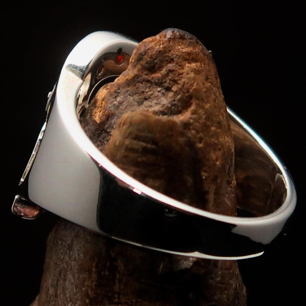 Adorning the ring are 15 vibrant red Cubic Zirconias that add a dazzling sparkle to the overall design. These stones are carefully set to enhance the ring's aesthetic appeal, making it a perfect accessory for both casual and formal occasions. The red CZs not only provide a pop of color but also symbolize passion and energy, making this ring a meaningful addition to your collection.