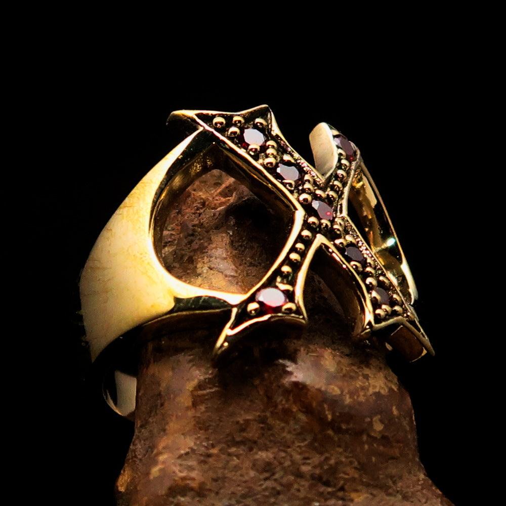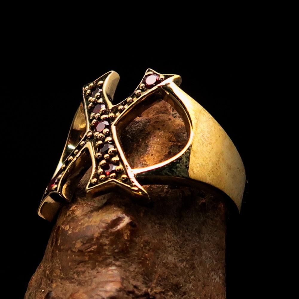 Introducing the Excellent crafted Initial Ring Bold Letter X, a remarkable piece that combines elegance and individuality. This ring is not just an accessory; it’s a statement of style and personality. Made from high-quality solid brass, this ring is designed to last while providing a luxurious feel. The standout feature of this ring is the seven dazzling red Cubic Zirconias that are meticulously set to enhance its bold letter design.