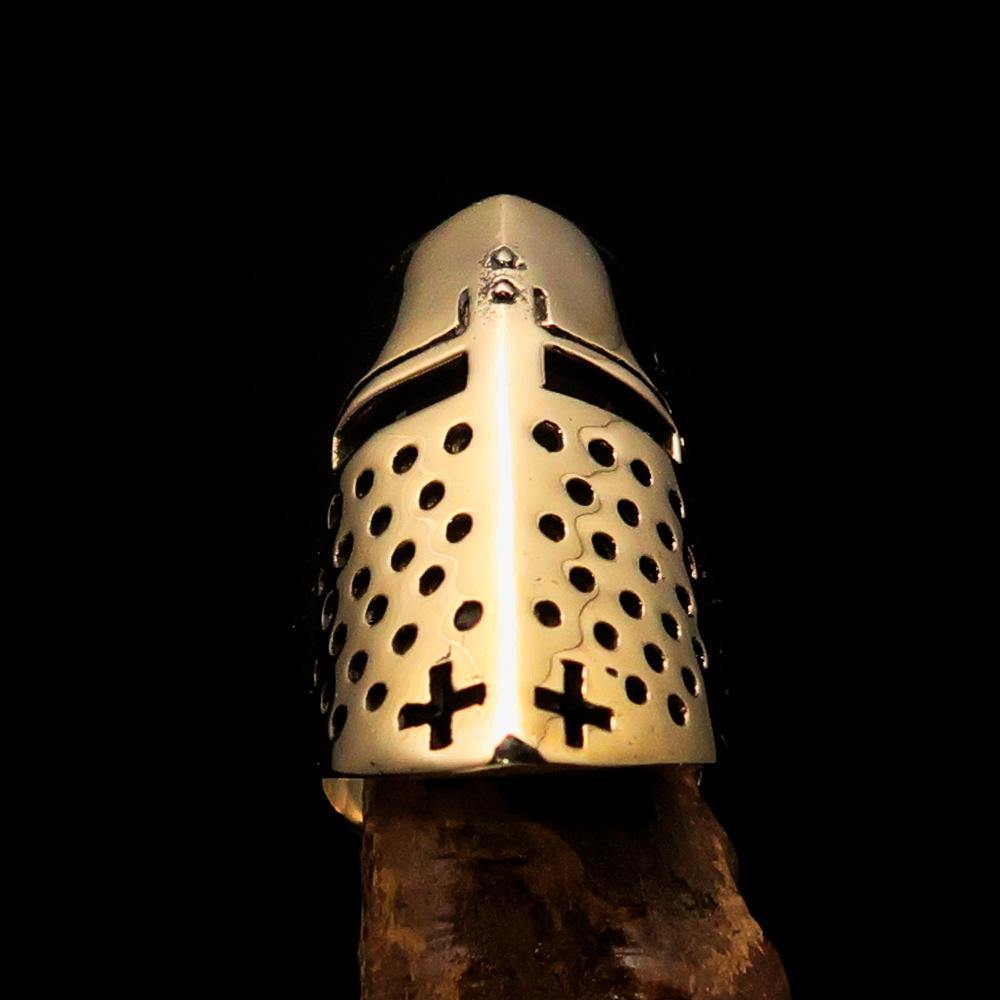 Introducing the Excellent Crafted Medieval Ring Knight Helmet, a stunning piece of jewelry that combines artistry with historical significance. Made from solid brass, this ring is not only a beautiful accessory but also a durable one, ensuring it can be cherished for years to come. The antiqued and high polished finish gives it a unique character, making it a standout piece in any collection.