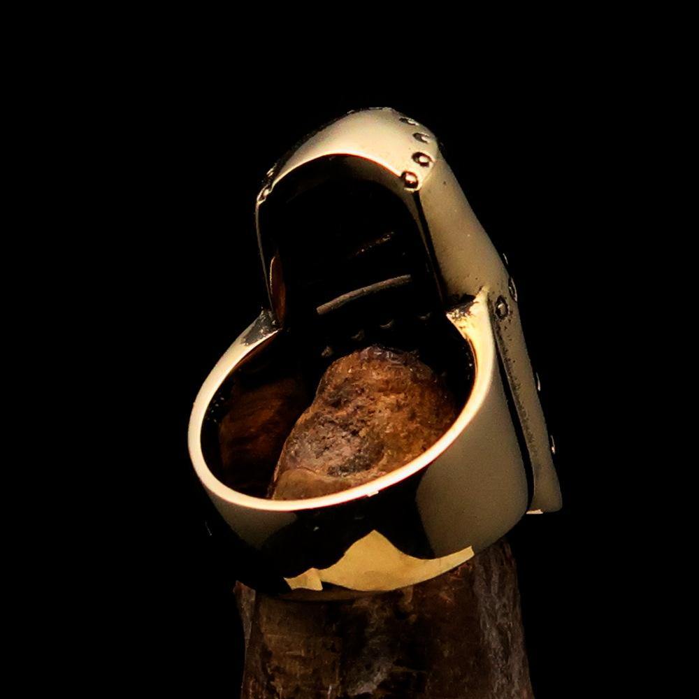 This Medieval Ring is expertly crafted, showcasing the skill and dedication of our artisans. The solid brass material not only enhances its aesthetic appeal but also ensures that it withstands the test of time. The combination of antiqued and polished finishes creates a striking contrast that highlights the intricate details of the knight helmet design.