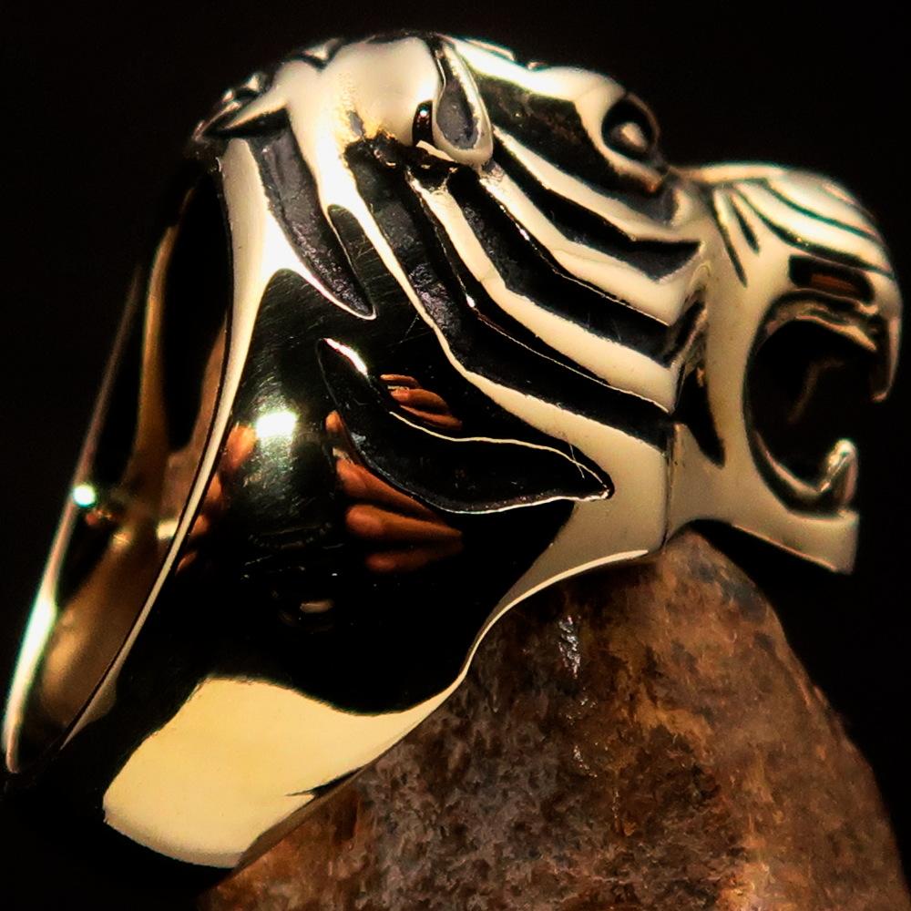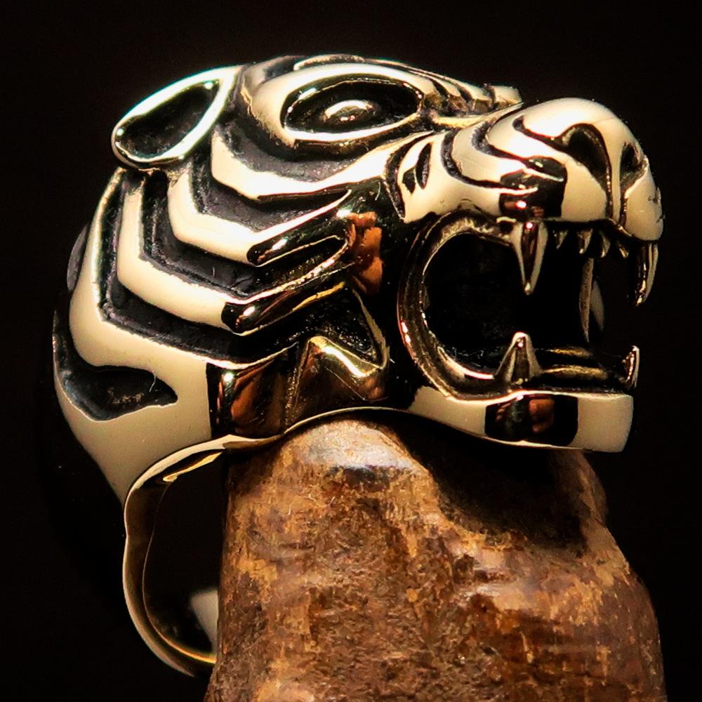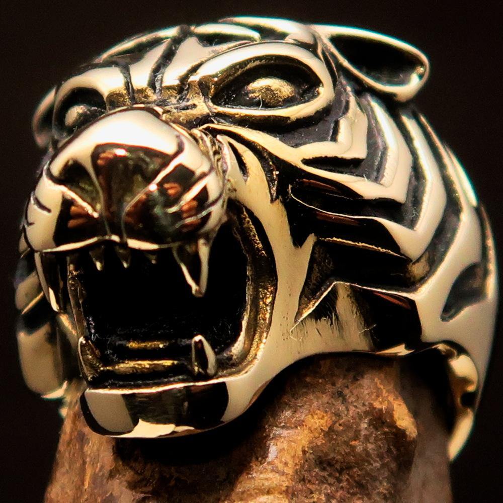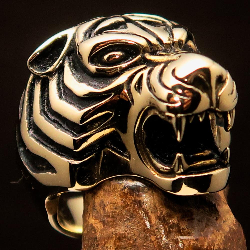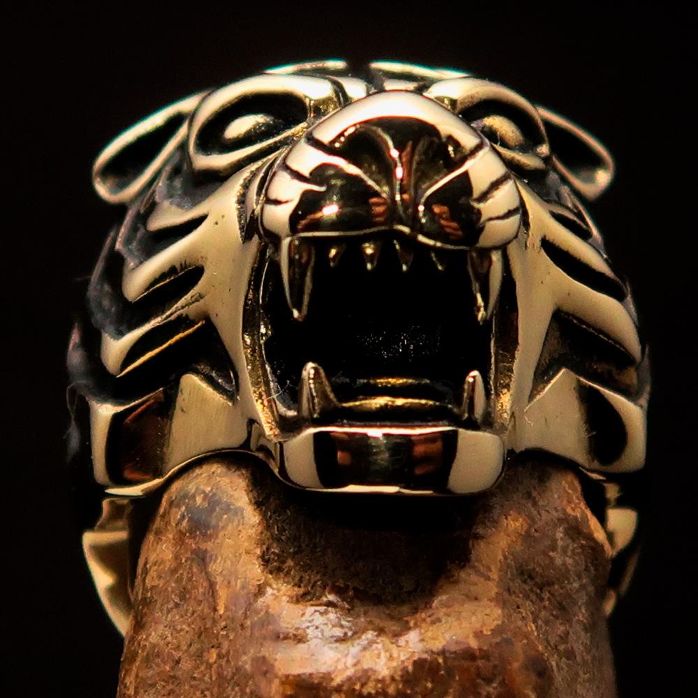 In summary, the Excellent Crafted Men's Animal Ring Male Tiger Antiqued in Brass is a remarkable accessory that combines artistry, durability, and style. Its unique design and quality craftsmanship make it a must-have for any modern man looking to express his individuality through fashion.