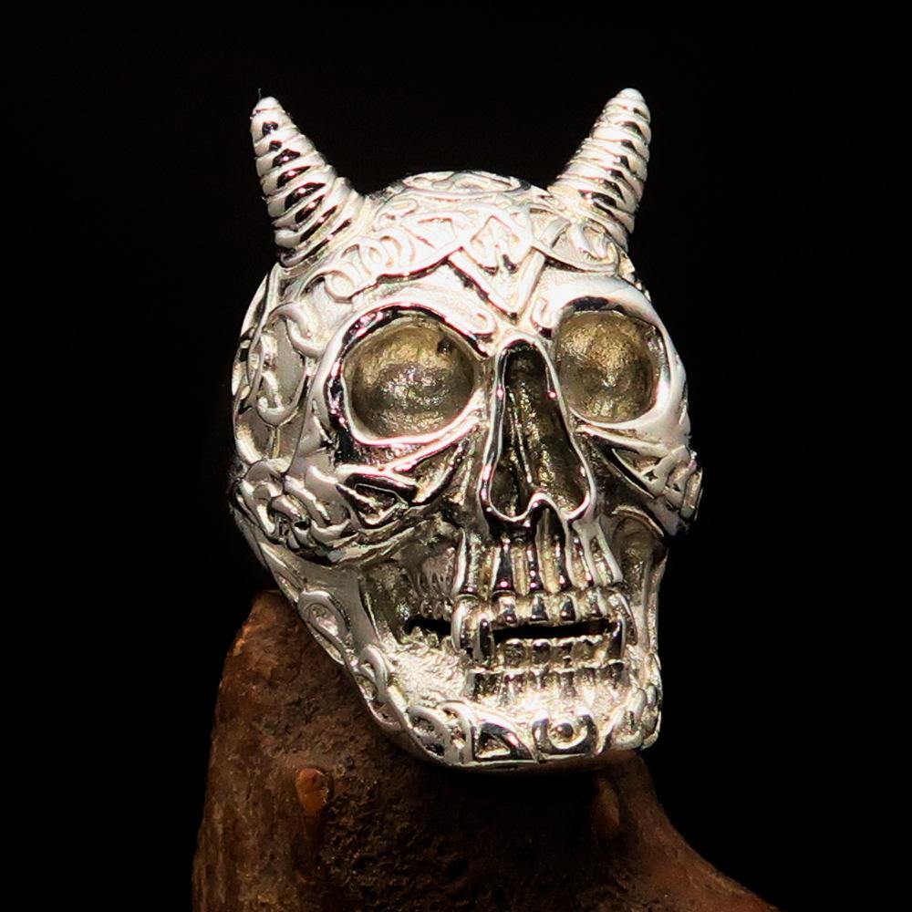Introducing the meticulously crafted Men's Biker Ring, featuring a striking Celtic Devil Skull design that embodies both elegance and a rebellious spirit. This exceptional piece is made from solid sterling silver, ensuring durability and a luxurious shine that is accentuated by its mirror-polished finish.