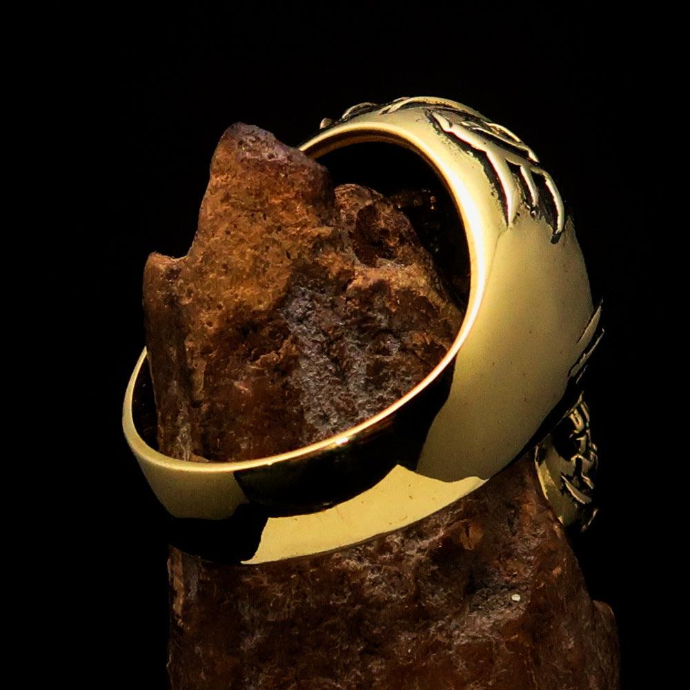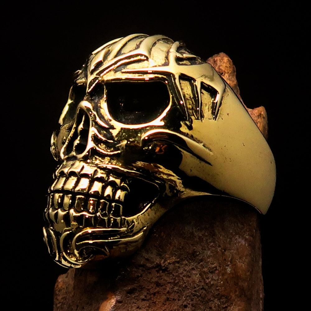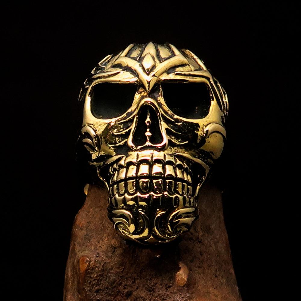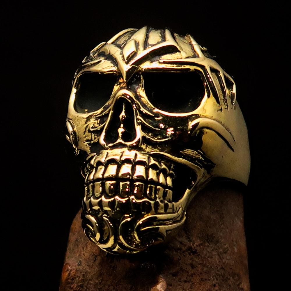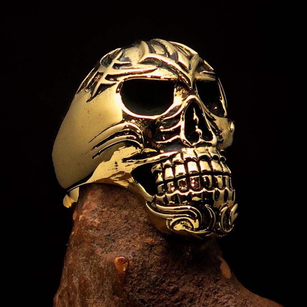 Each Men's Biker Tribal Skull Ring is expertly crafted with attention to detail. The solid brass material not only provides durability but also gives the ring a rich, warm tone that complements the intricate skull design. The high polished finish reflects light beautifully, while the antiqued elements add depth and character, making this ring a true work of art.