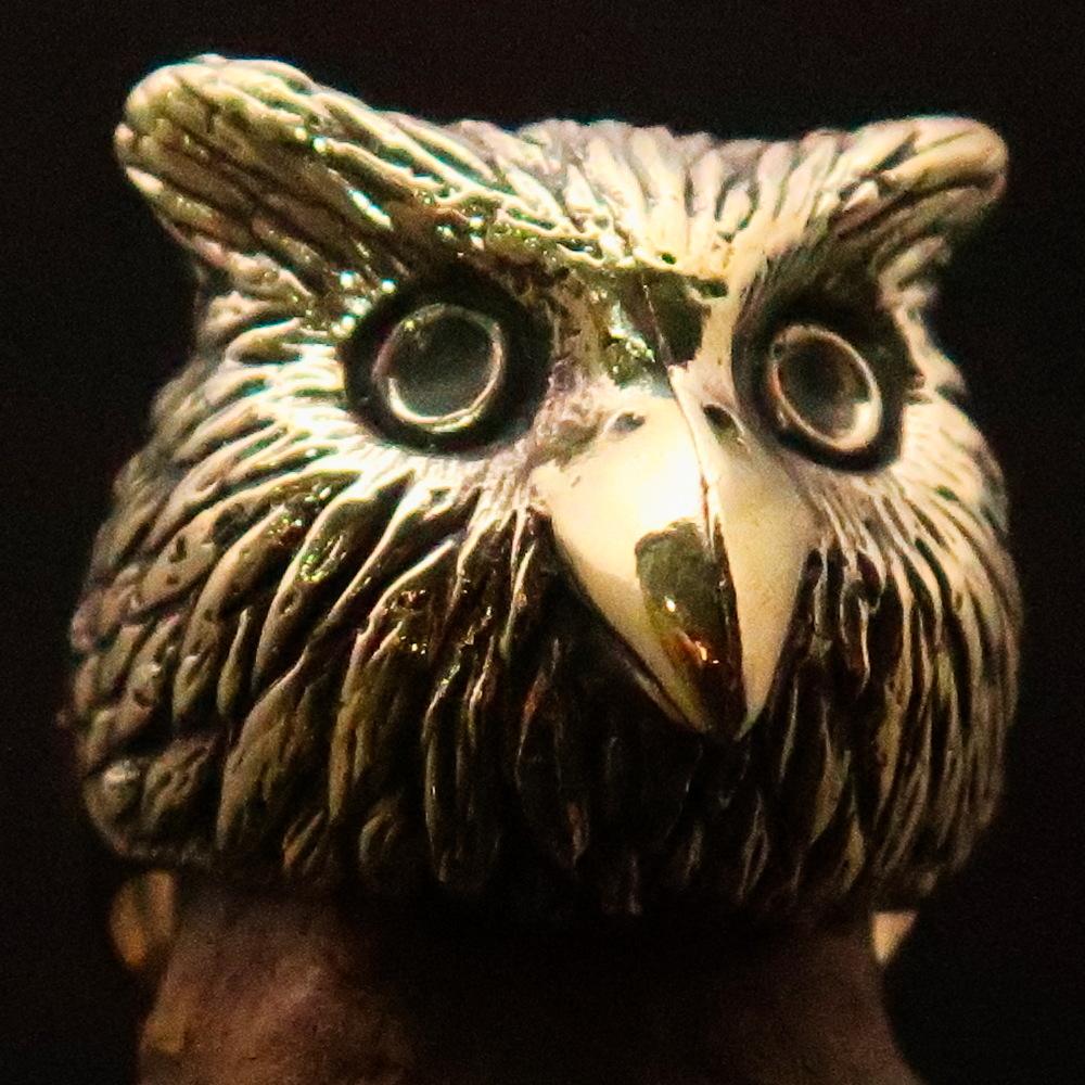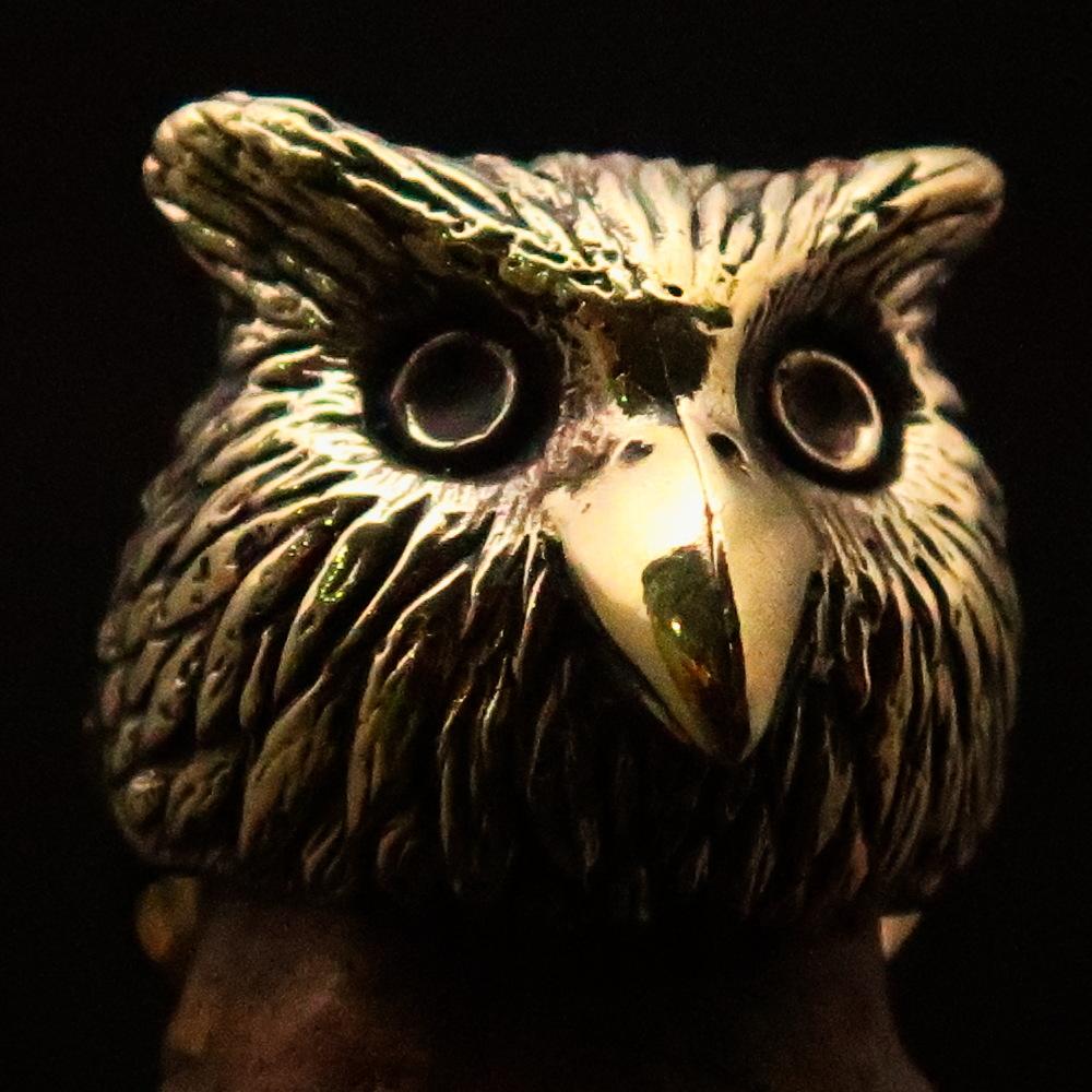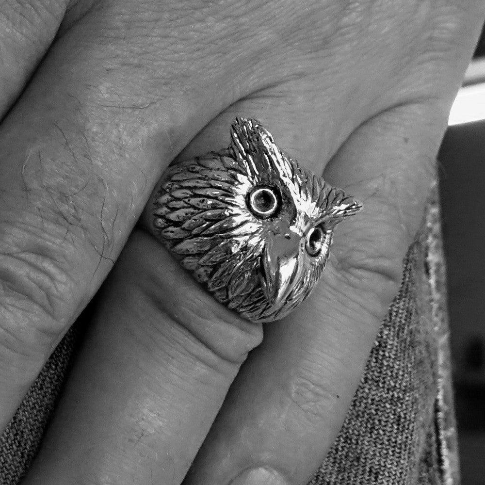 Crafted with meticulous attention to detail, this ring features a combination of antiqued and high polished finishes. The contrast between the two finishes enhances the intricate details of the owl head, ensuring that it stands out whether worn casually or on special occasions. The craftsmanship involved in creating this ring is evident in every curve and contour, making it a true work of art.