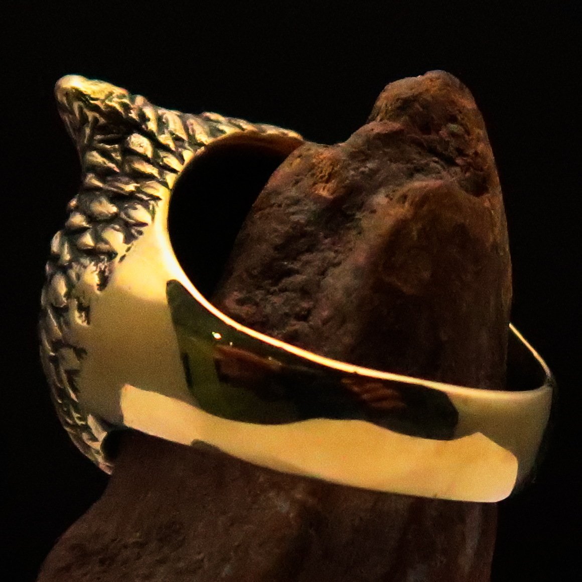 In addition to its aesthetic appeal, the Men's Brass Night Bird Ring Owl Head can also serve as a great conversation starter. Its unique design and symbolism can spark discussions about nature, wildlife, and personal style. Whether you are wearing it to a casual outing or a formal event, this ring is sure to draw attention and compliments.