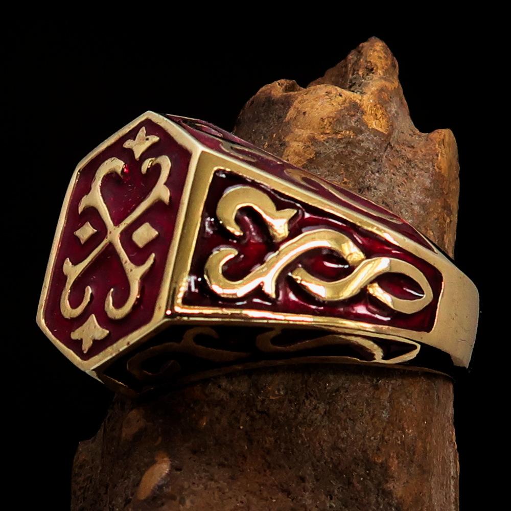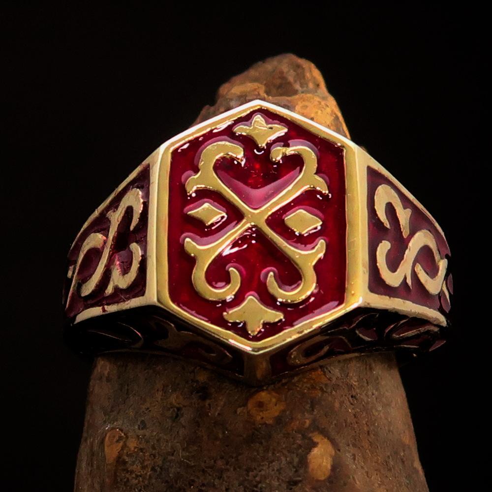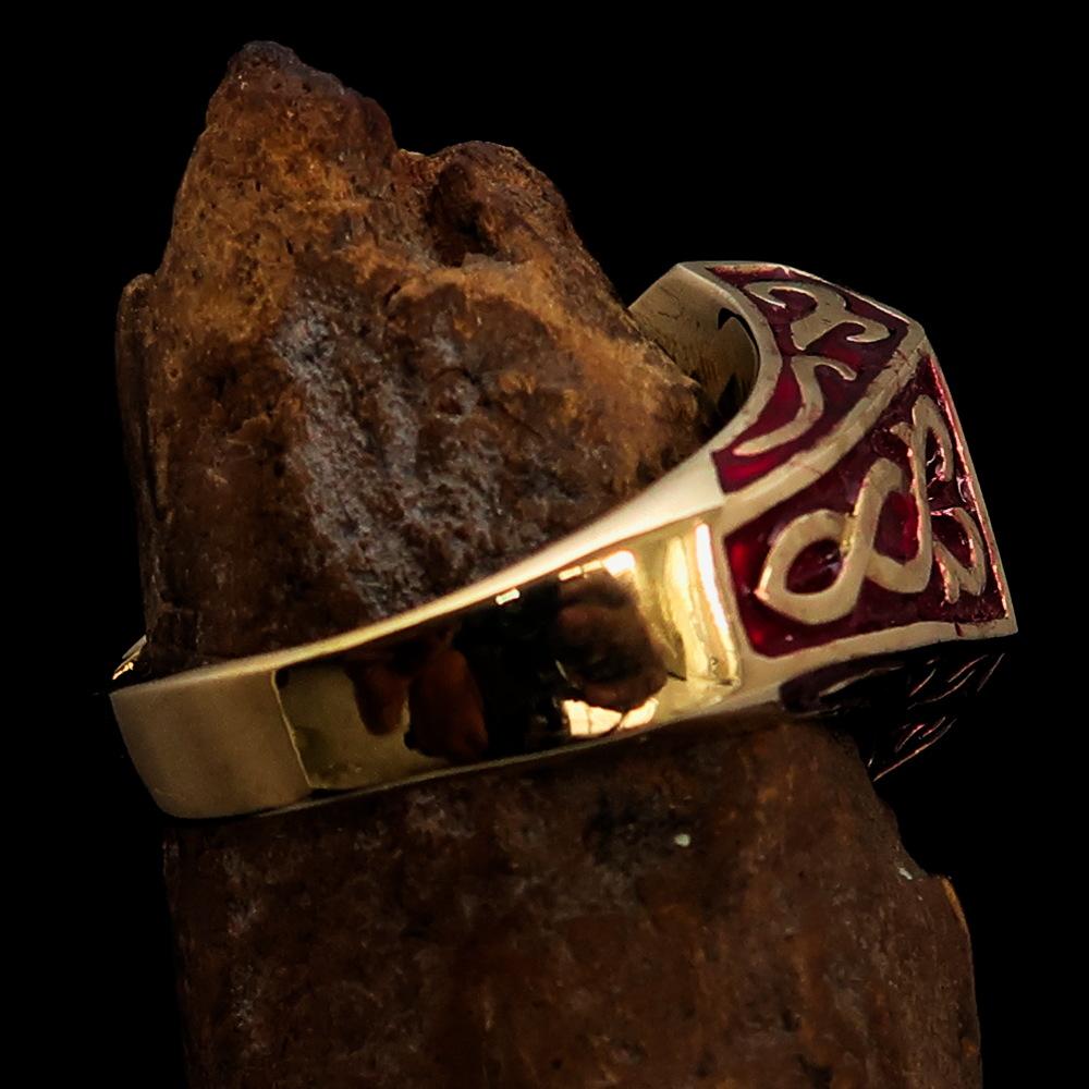 Introducing the beautifully crafted Men's Celtic Crest Ring with Red Enamel, a perfect blend of tradition and modern style. Made from solid brass, this ring is not only durable but also showcases a stunning high-polished finish that catches the eye. The vibrant red enamel adds a unique touch, making it an ideal accessory for any occasion.