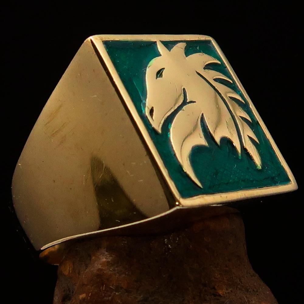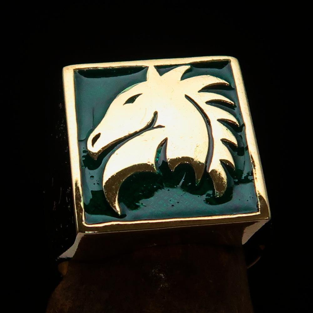 The green Horse Head design is not only eye-catching but also symbolizes intelligence and strategy, making it a perfect accessory for chess players. The combination of solid brass and enamel creates a striking contrast that enhances the overall look of the ring. Whether you are wearing it during a chess match or as a statement piece in your everyday attire, this ring is sure to draw attention and admiration.