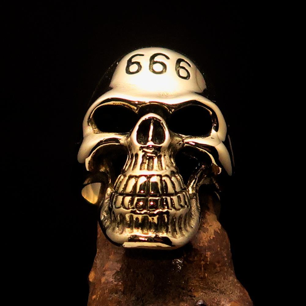 Introducing the Men's Devil Skull Ring 666, a striking piece of jewelry that combines artistry and craftsmanship. Made from solid brass, this ring is designed to make a bold statement while ensuring durability and longevity. The unique devil skull design, featuring the number 666 on the forehead, adds an edgy touch that is perfect for those who want to express their individuality.