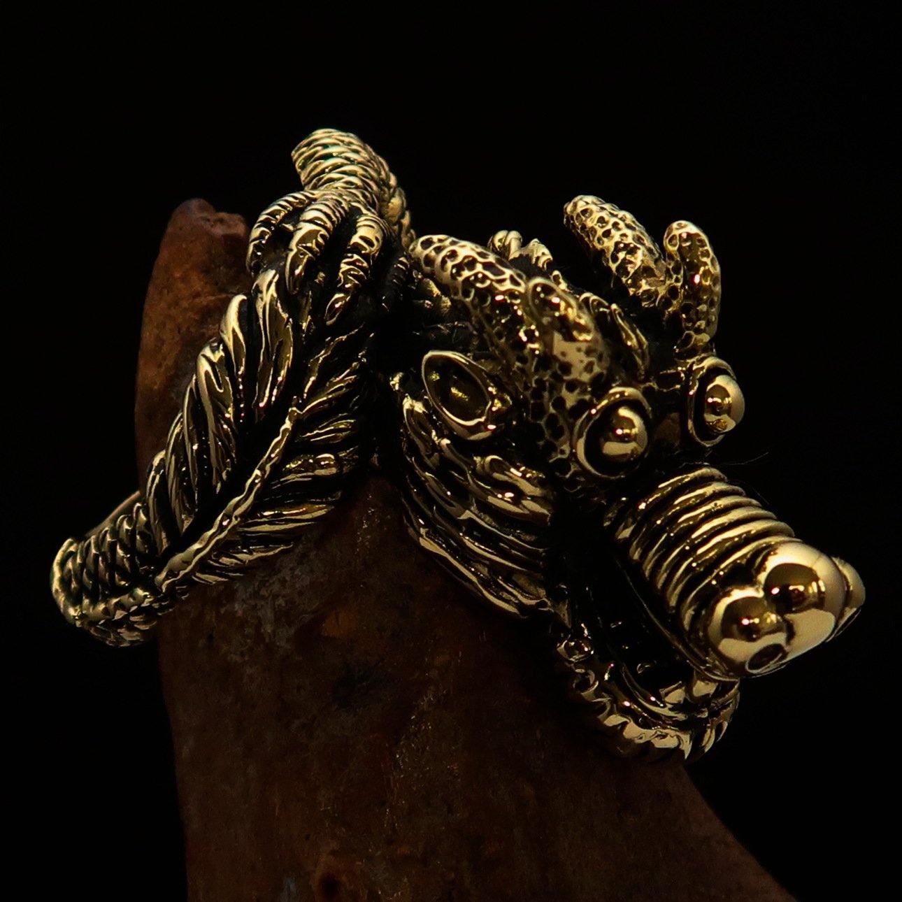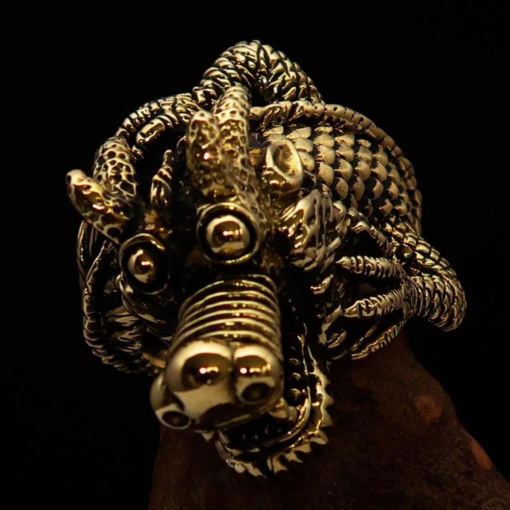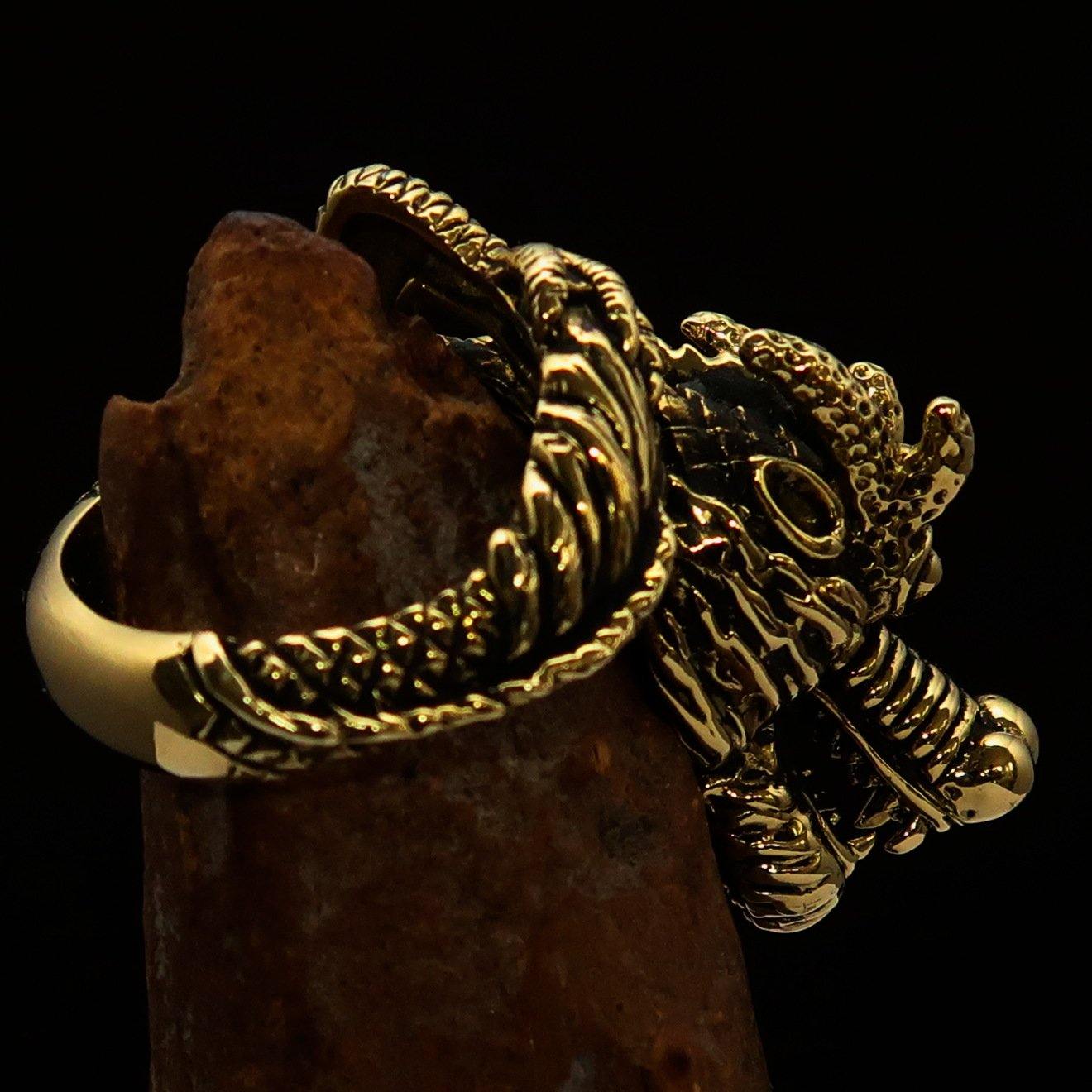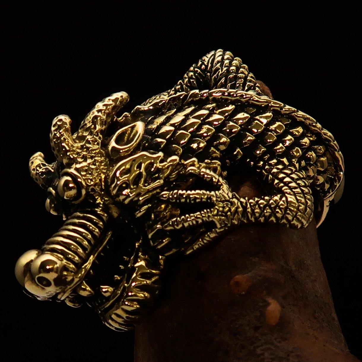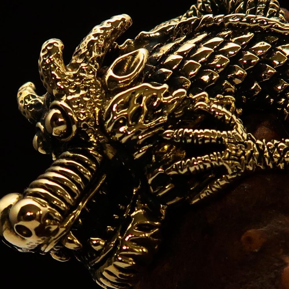 Our Men's Dragon Ring features an antique finish combined with a high polish, giving it a timeless and elegant look. The craftsmanship involved in creating this ring ensures that it not only looks great but also stands the test of time. The solid brass material is resistant to tarnishing, allowing you to enjoy its beauty for years to come.