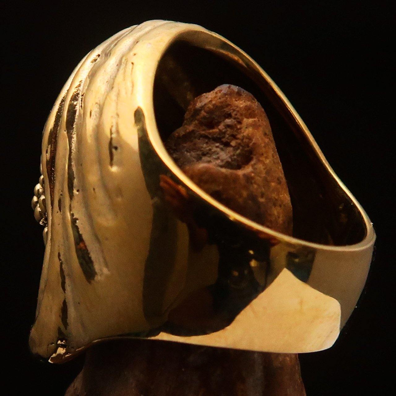Crafted from high-quality solid brass, this ring is designed to withstand the test of time. The high polished finish not only adds to its aesthetic appeal but also protects the ring from tarnishing, ensuring it maintains its shine and luster. The antiqued finish further enhances the ring's character, giving it a vintage look that complements various styles and outfits.