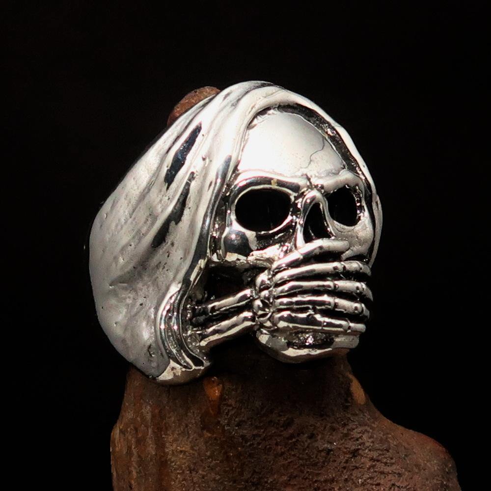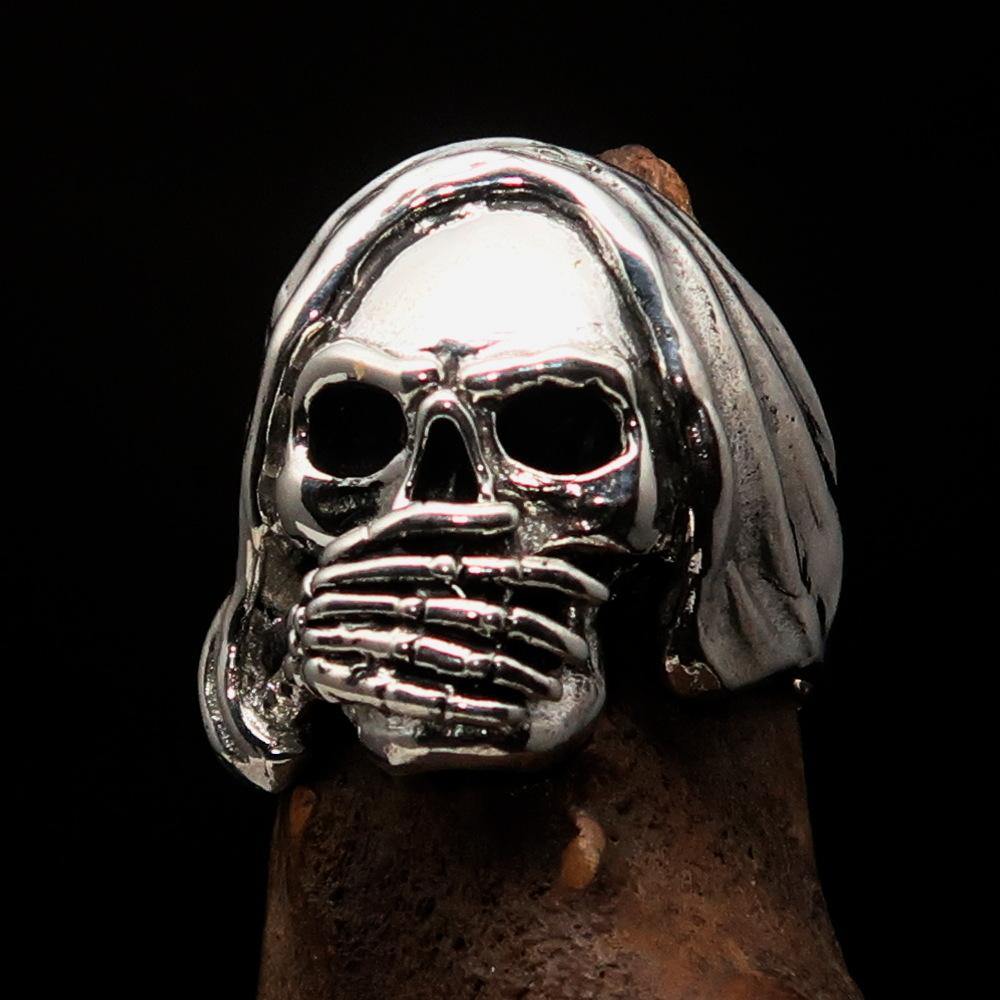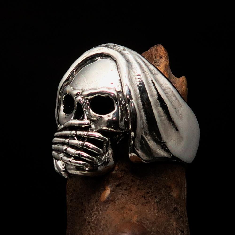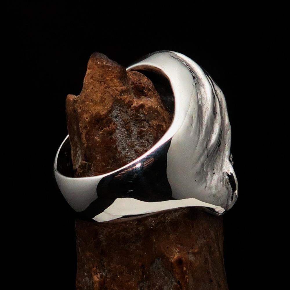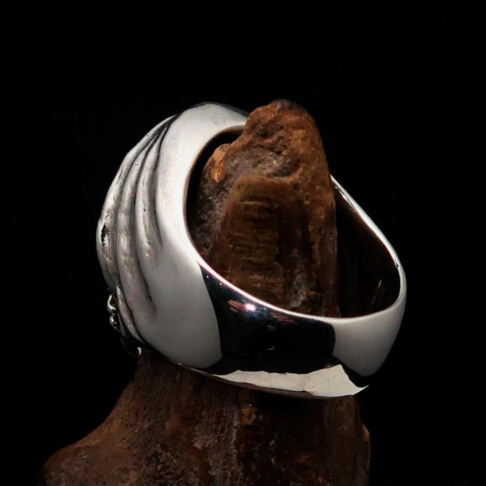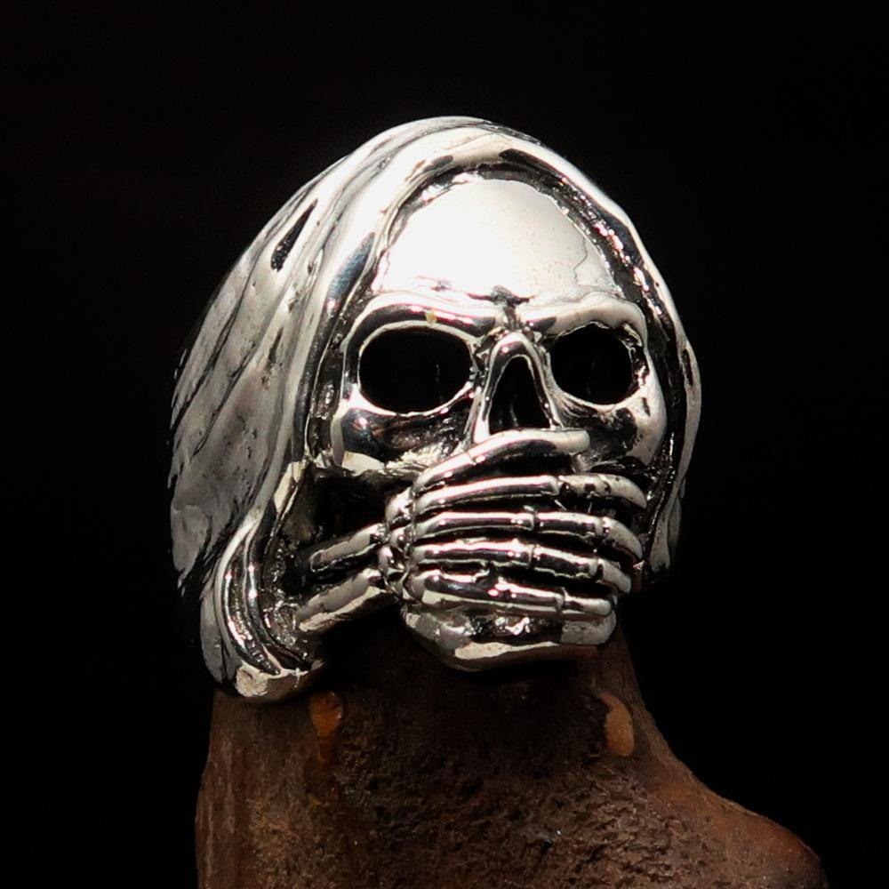 Introducing the Excellent Crafted Men's Grim Reaper Skull Ring, a stunning piece of jewelry that combines artistry and durability. Made from solid sterling silver, this ring is perfect for bikers and anyone who appreciates unique accessories. The high polished and antiqued finish gives it a striking appearance, making it a standout piece in any collection.