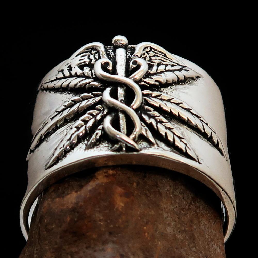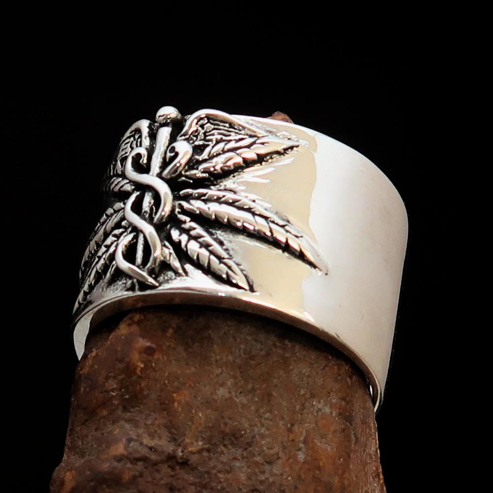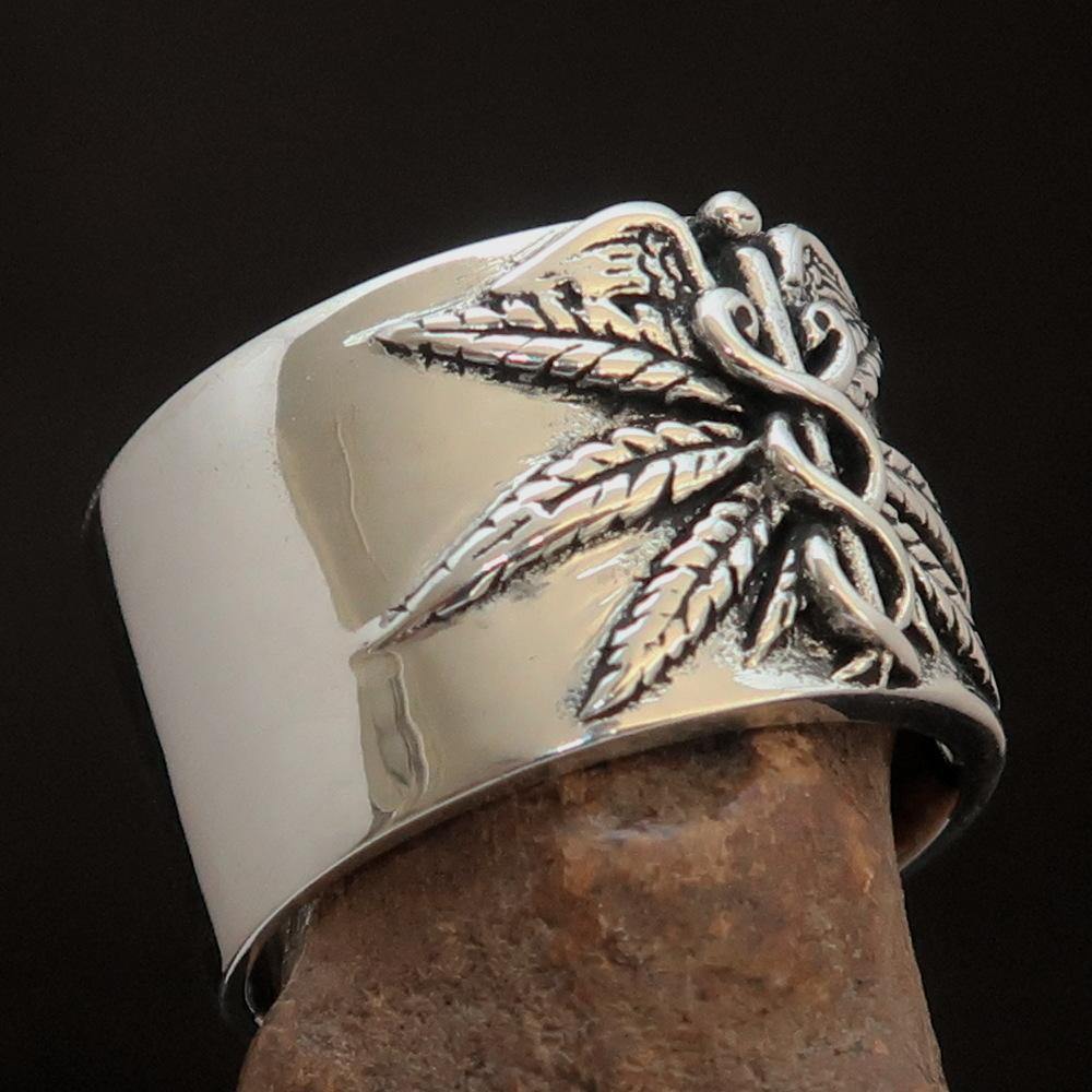 Choosing our Men's Medical Weed Ring means investing in a high-quality piece of jewelry that reflects your personal style and values. The combination of solid sterling silver and a unique design makes this ring a standout accessory that can be worn on any occasion. Whether you're dressing up for a special event or looking for a casual everyday piece, this ring fits the bill.