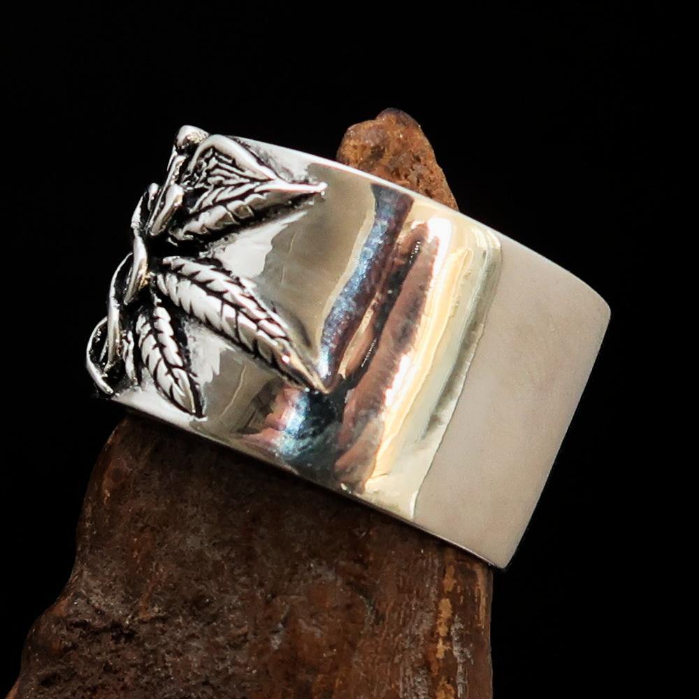 Introducing the Excellent Crafted Men's Medical Weed Ring, a unique piece of jewelry that combines style and meaning. Made from solid sterling silver, this ring features a beautifully detailed marijuana leaf design, making it a perfect accessory for cannabis enthusiasts. The ring is hallmarked 925, ensuring its authenticity and quality.