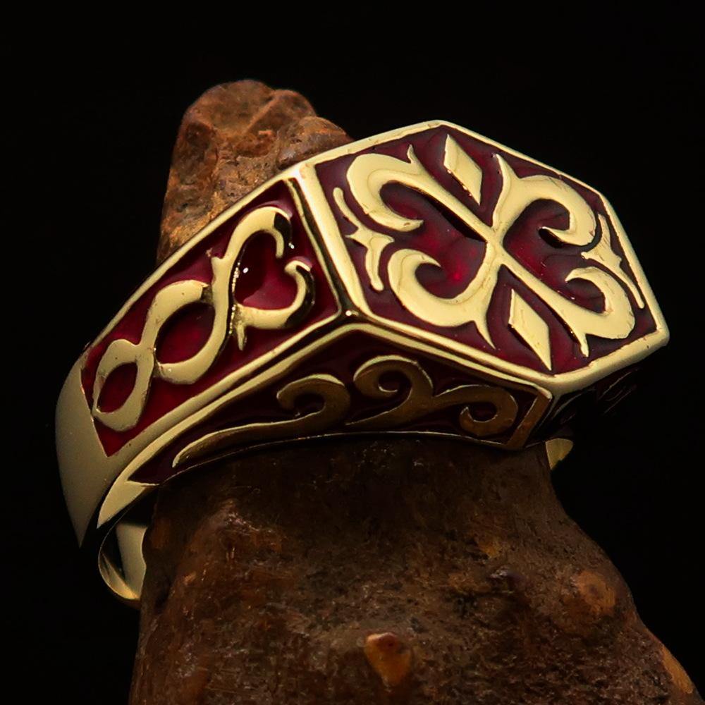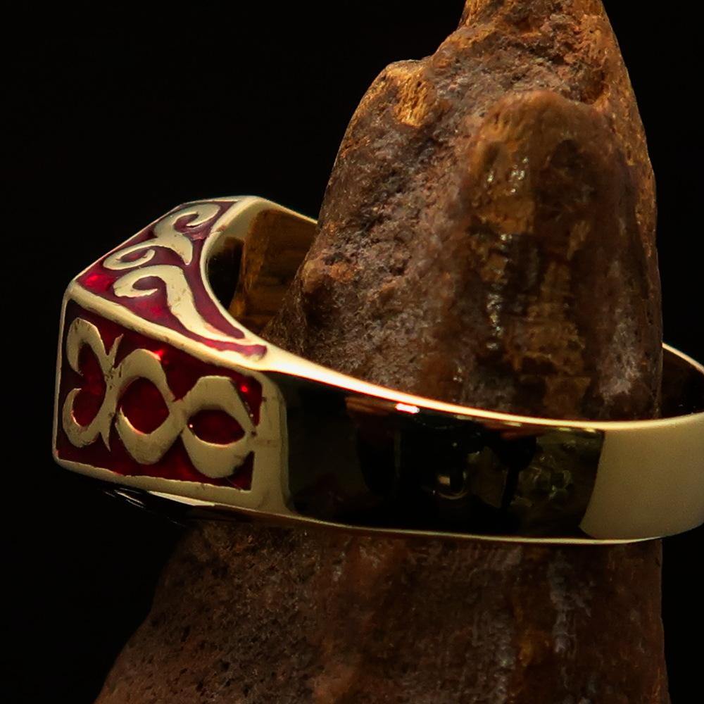 Our Men's Medieval Ring is designed with attention to detail, ensuring that each piece is not only visually appealing but also built to last. The solid brass material provides strength and resilience, making it an ideal choice for daily wear. The red enamel crest adds a touch of sophistication, making this ring a standout piece in any jewelry collection.