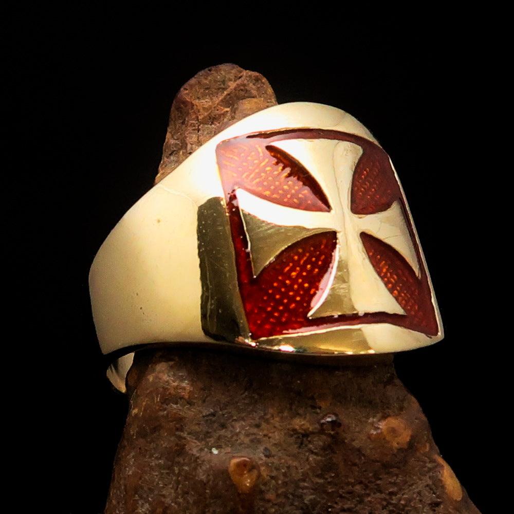 Introducing the Men's Orange Iron Cross Biker Ring, a stunning piece of jewelry that combines style and durability. Crafted from high-quality solid brass, this ring features a vibrant orange enamel finish that makes it stand out. Whether you're a biker or simply someone who appreciates unique accessories, this ring is designed to make a statement.