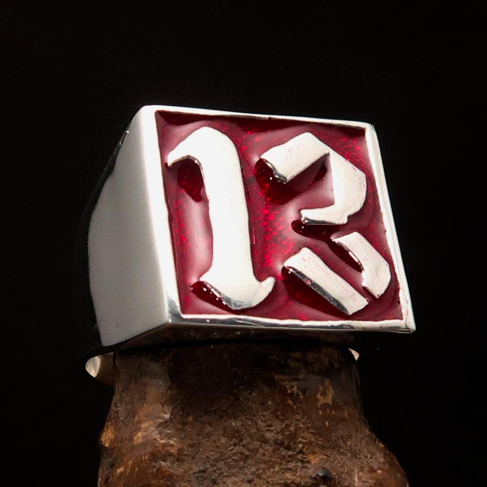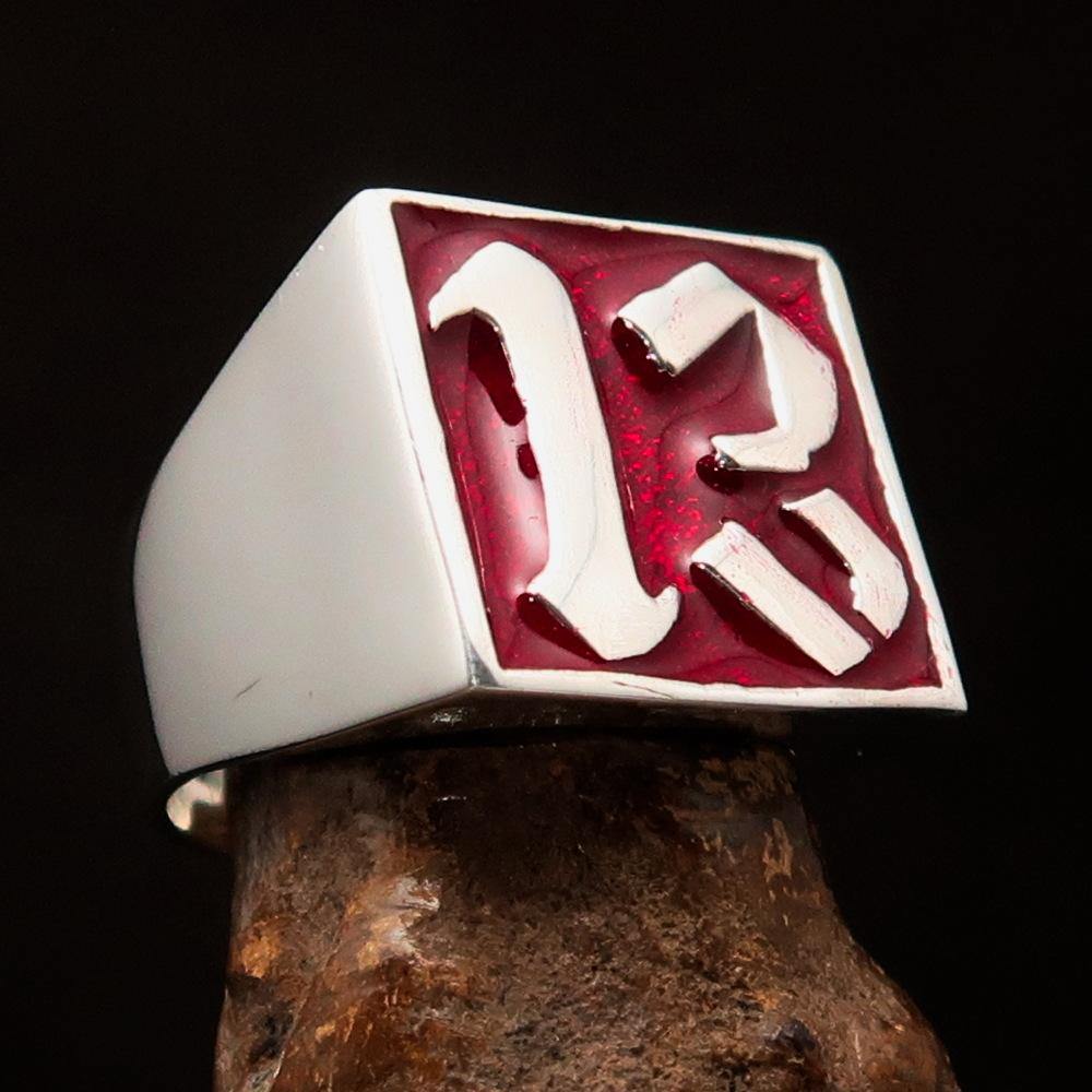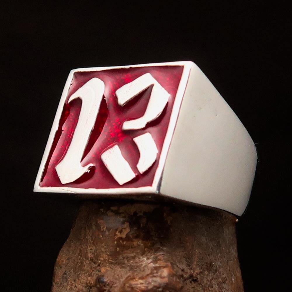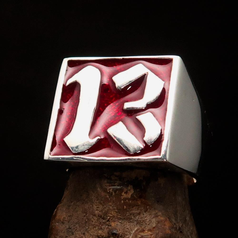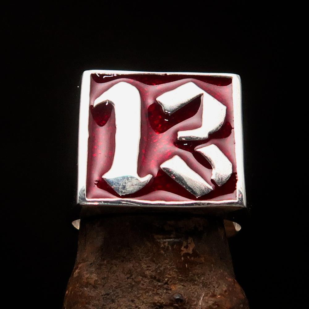 Introducing the exquisite Men's Red Lucky Number 13 Ring, meticulously crafted from solid sterling silver. This unique ring is not just a piece of jewelry; it symbolizes luck and style, making it a perfect accessory for any man who appreciates fine craftsmanship and meaningful designs. The ring features a stunning red enamel finish that adds a vibrant touch, ensuring it stands out in any collection.