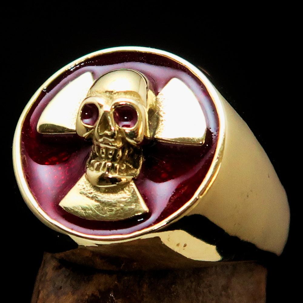 Crafted with care, the Men's Red Radioactive Skull Ring showcases exceptional quality. The solid brass construction ensures that the ring is not only visually appealing but also resistant to wear and tear. The high-polished finish adds a luxurious touch, making it a great gift for yourself or a loved one. Each ring is meticulously crafted to meet high standards, ensuring that you receive a product that you can cherish for years to come.