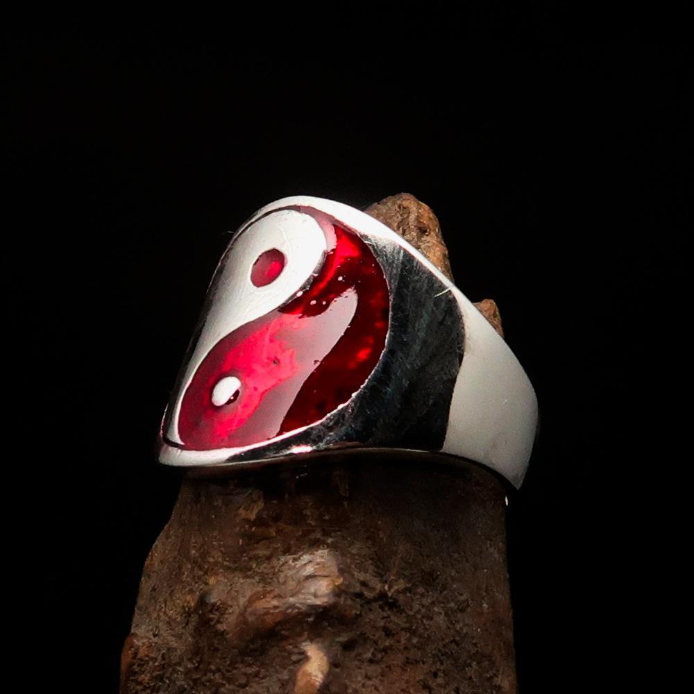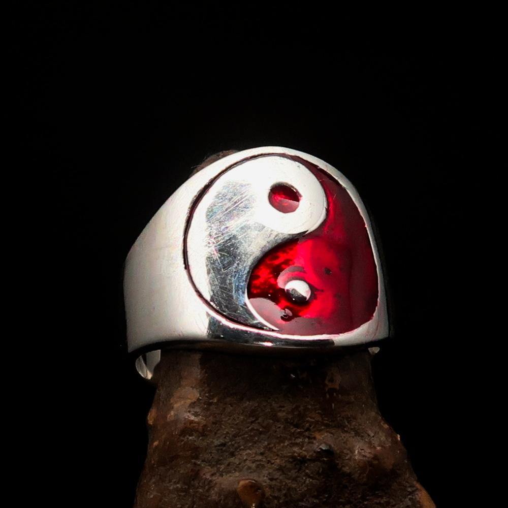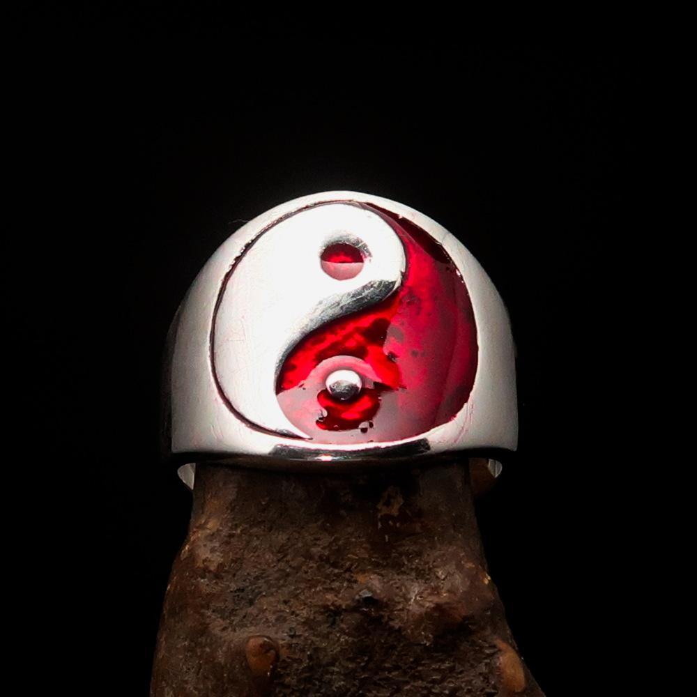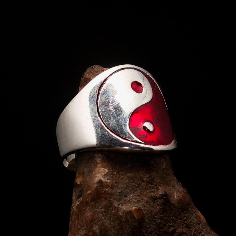 Introducing the beautifully crafted Men's Red Yin Yang Ring, made from solid sterling silver and featuring a stunning high-polished finish with vibrant red enamel. This unique ring is not just a piece of jewelry; it symbolizes balance and harmony, making it a perfect accessory for any man who appreciates both style and meaning.