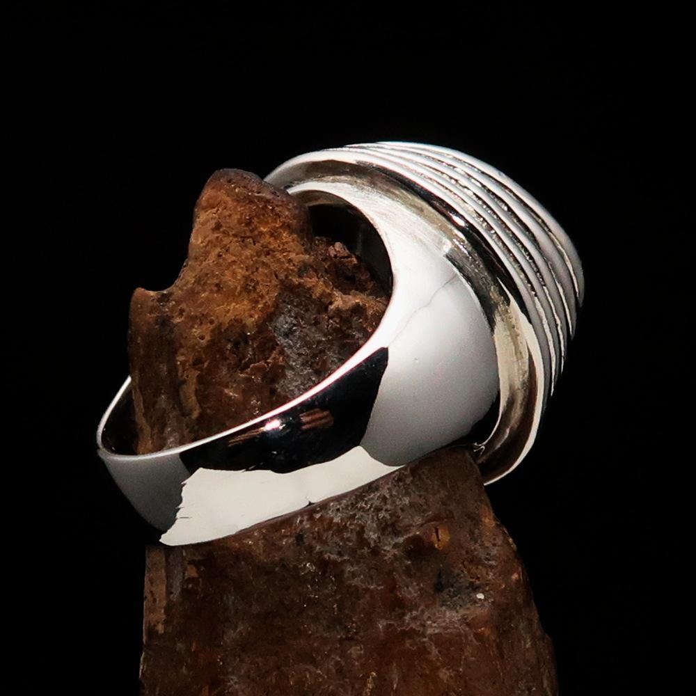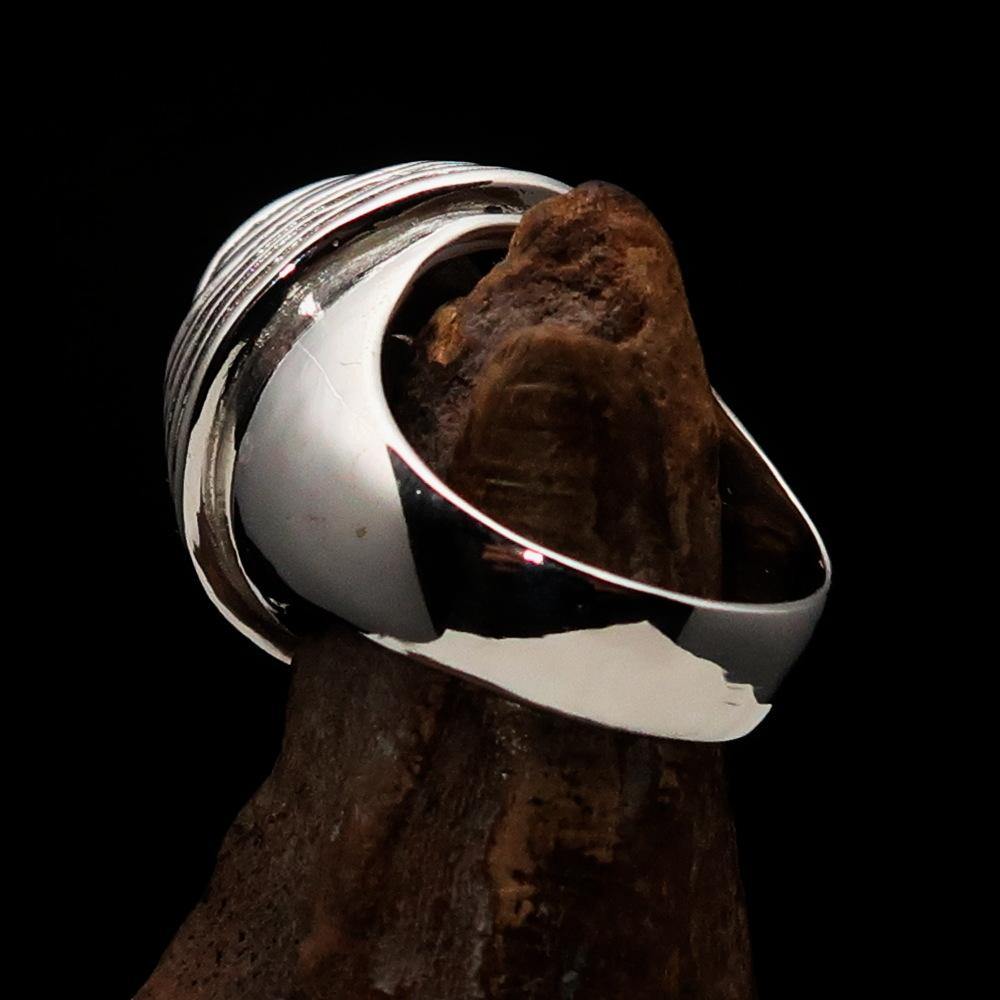 This ring is expertly crafted to ensure durability and style. The solid sterling silver material not only provides a luxurious look but also guarantees that the ring will withstand the test of time. The combination of antiqued and high polished finishes creates a striking contrast that enhances the ring's retro design, making it a standout piece for any occasion.