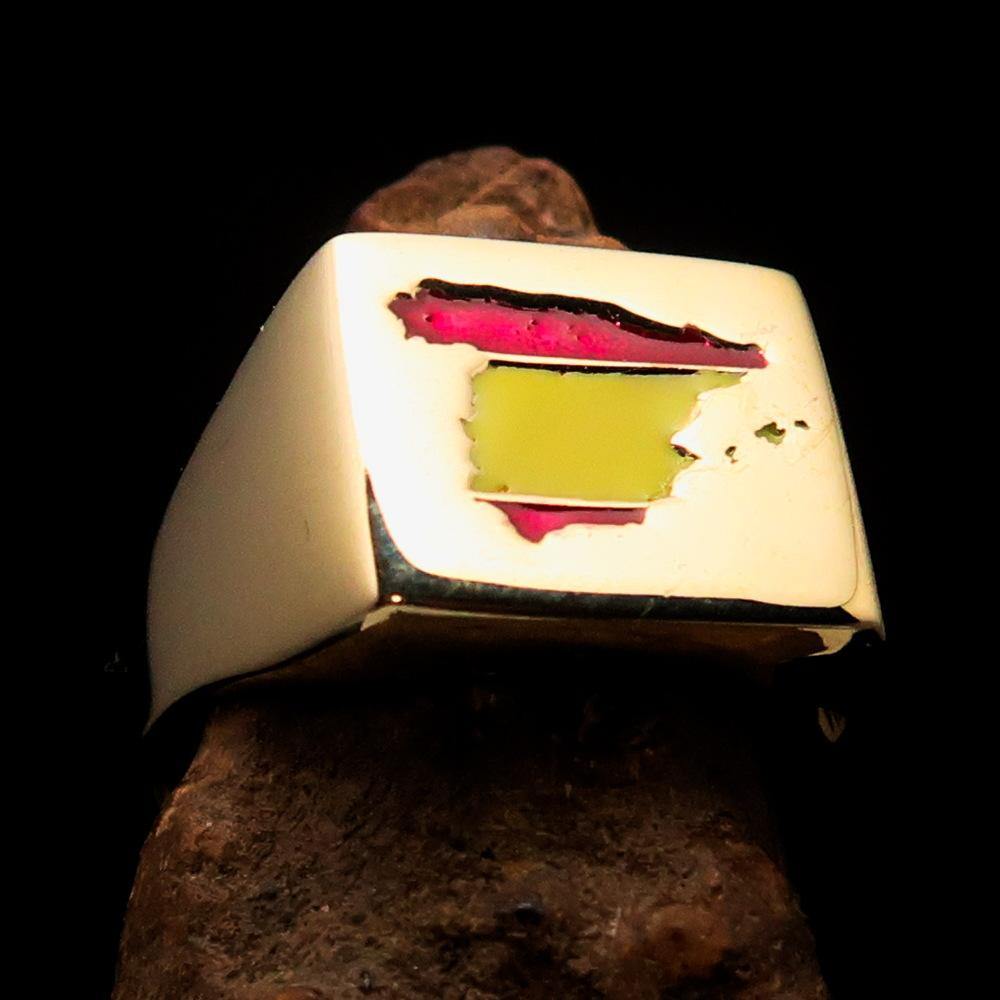 Men's Spanish National Flag Ring made of solid brass with high polish and enamel, featuring the RCRN logo engraved.