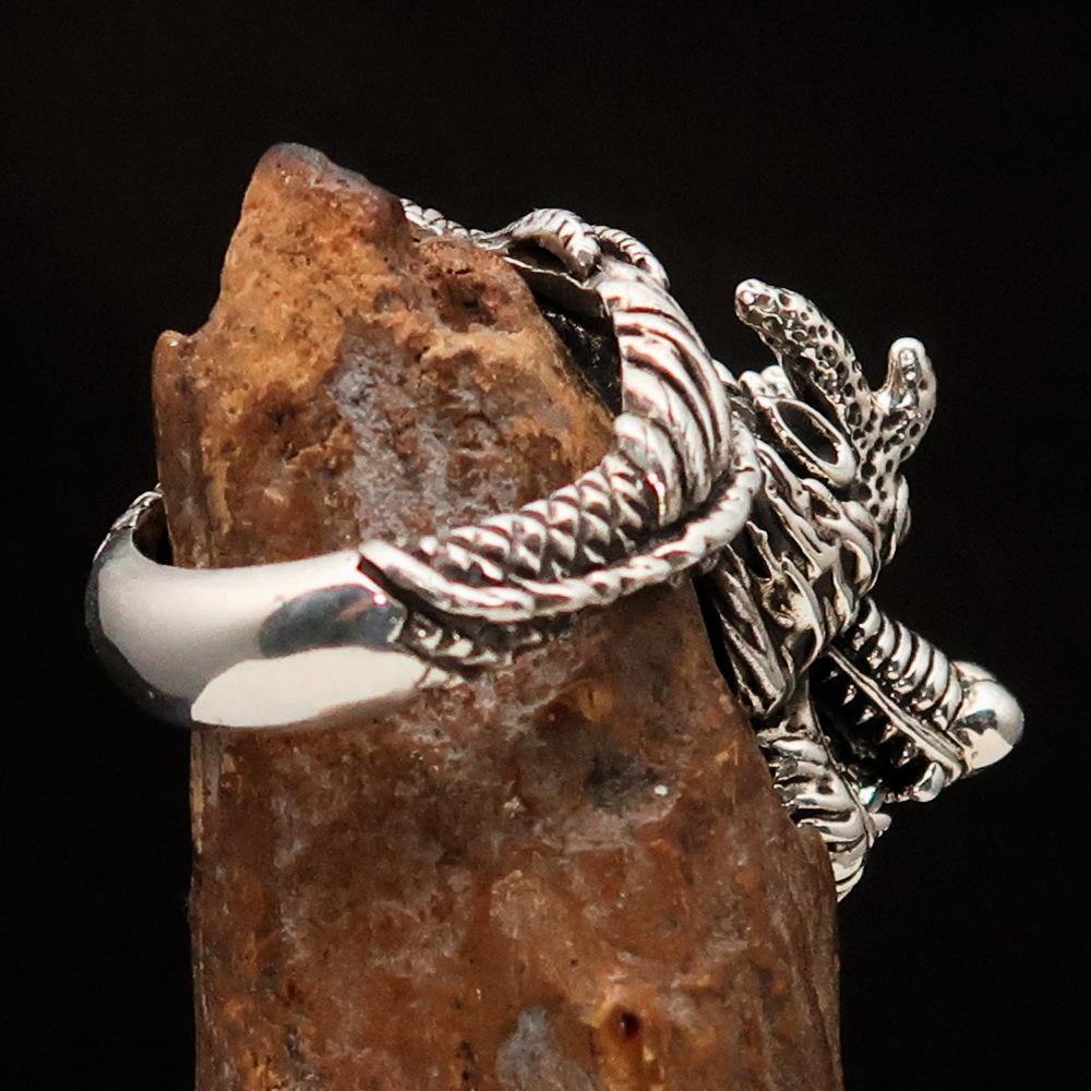 Each ring is hallmarked 925, which guarantees its authenticity and quality. This hallmark signifies that the ring is made from 92.5% pure silver, ensuring that you are investing in a high-quality piece of jewelry. The combination of antiqued and high-polished finishes on the dragon design creates a striking contrast that catches the eye and adds depth to the overall look of the ring.